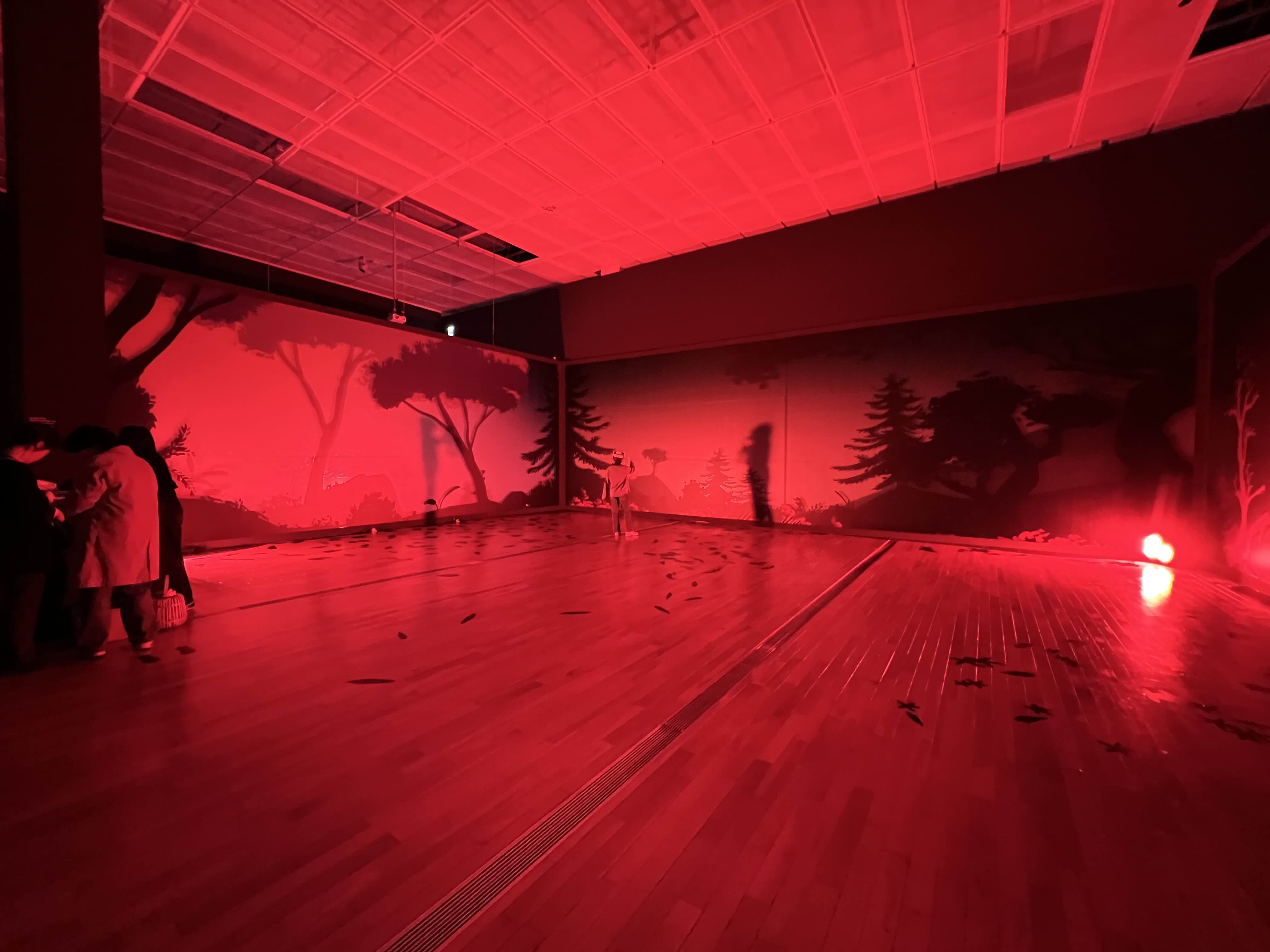 연령과 성별에 따른 통념적 역할이 튀집히고, 관은 어두운 위장을 천으로 덮이고, 영정 사진 대신 검은 거울이 들려 있다. 이 운구 행법은 장례식과 정치 시위와 카니발 퍼포먼스의 사이 어디엔가 워치한다. 이틀은 근대 자본주의의 폐허에서 행진하고 있다, 설화 속 도깨비들이 건물을 통과해 가고 폭우와 강풍이 휘몰아치면서 작품 속 시공간은 불안정하고 위태로워진다.