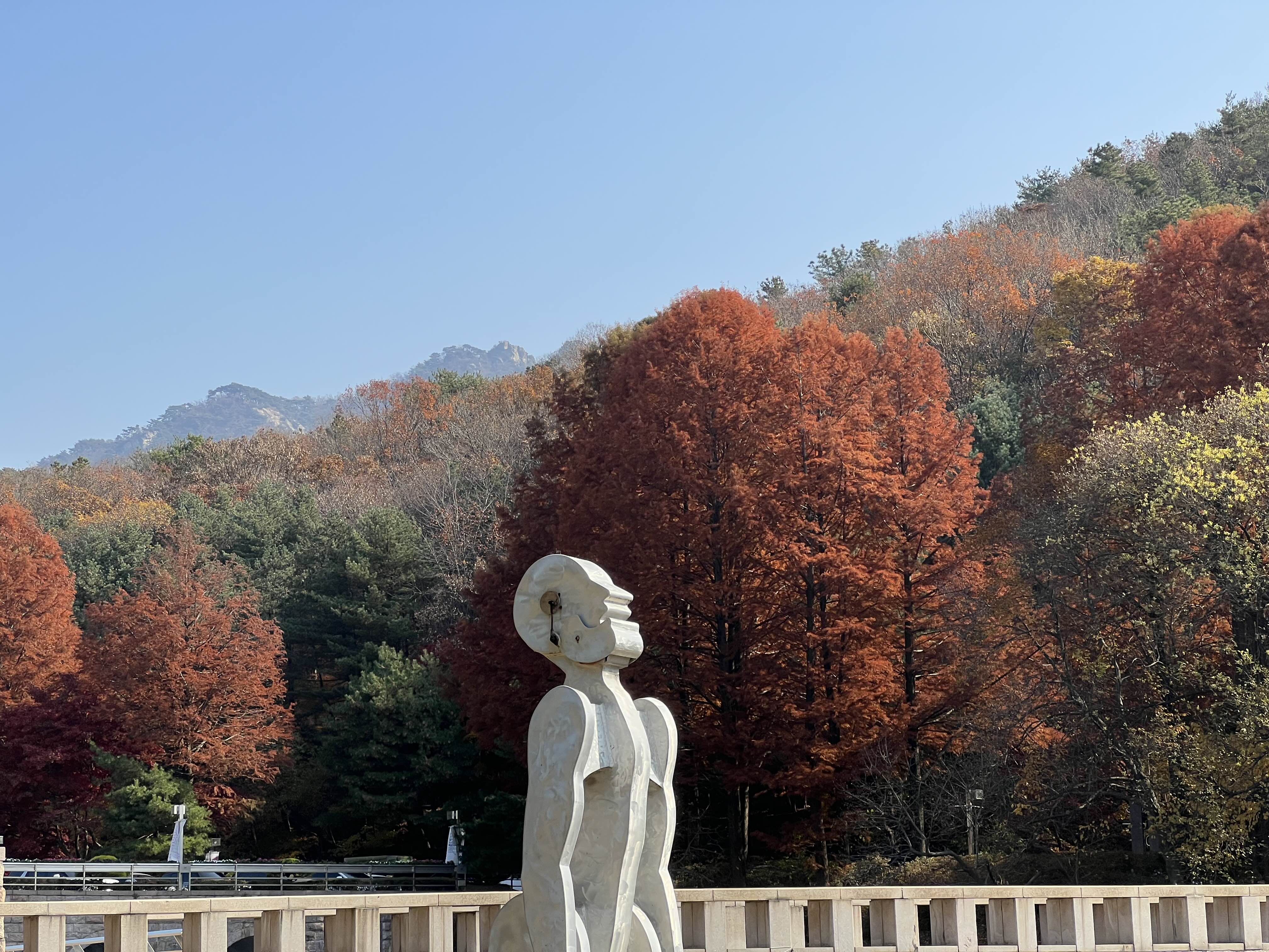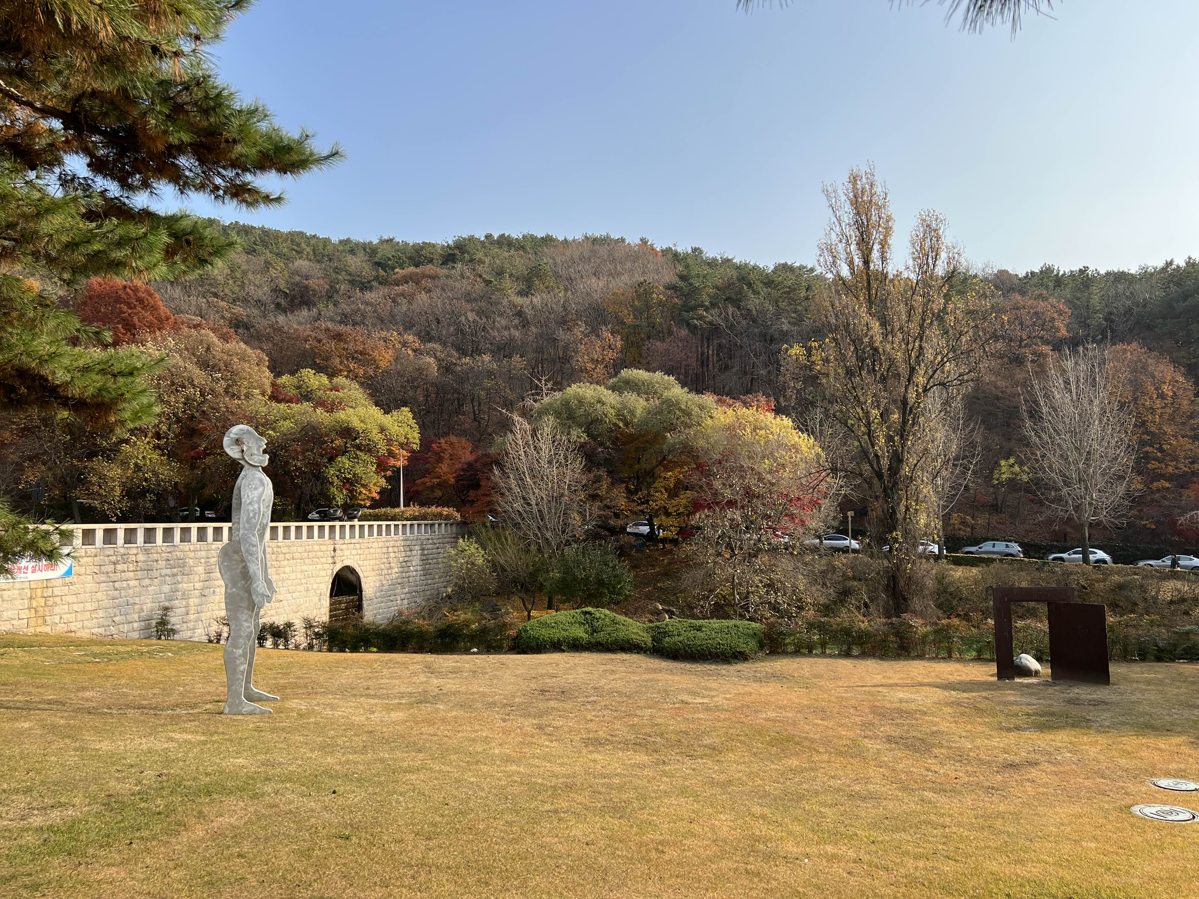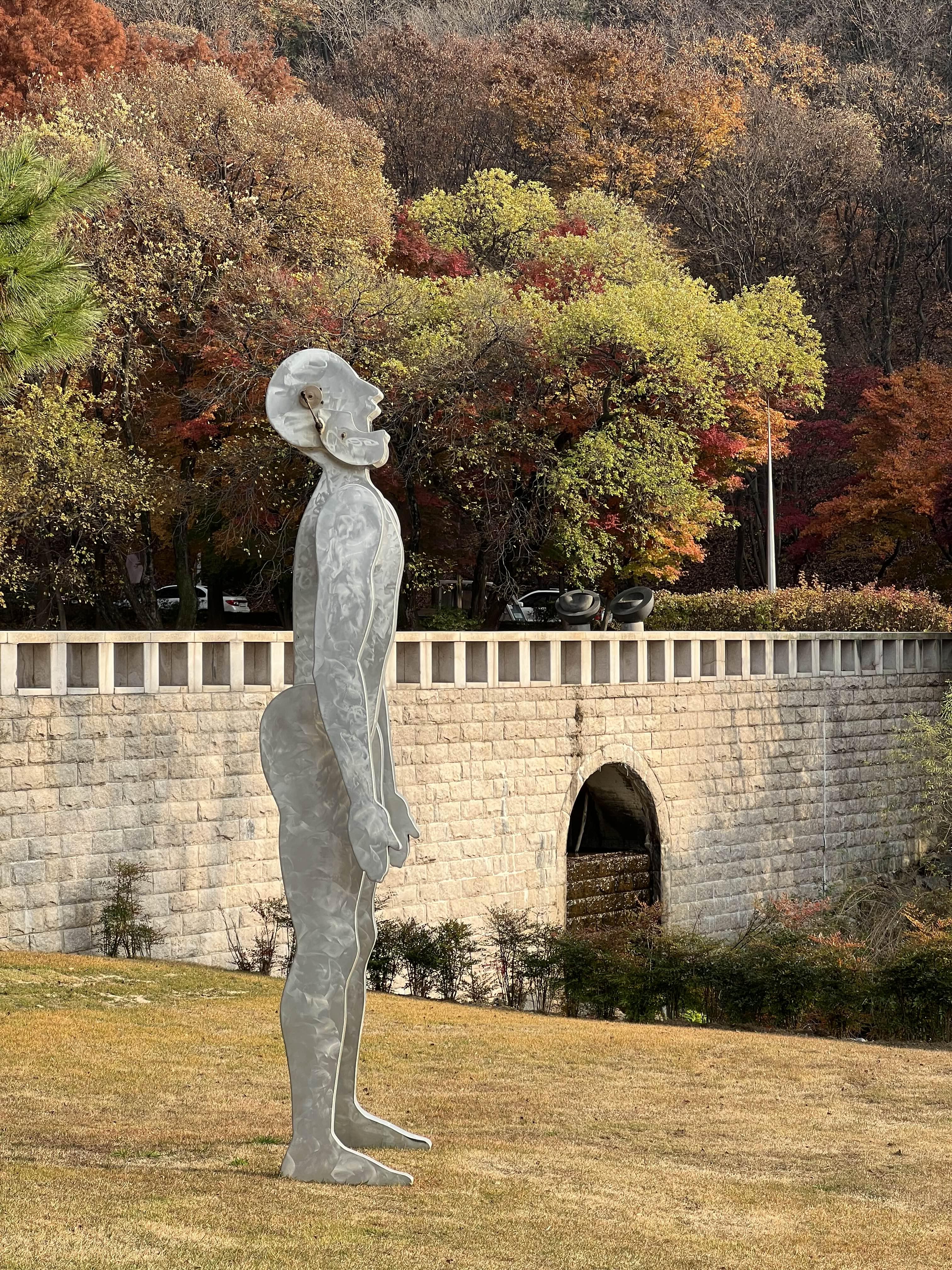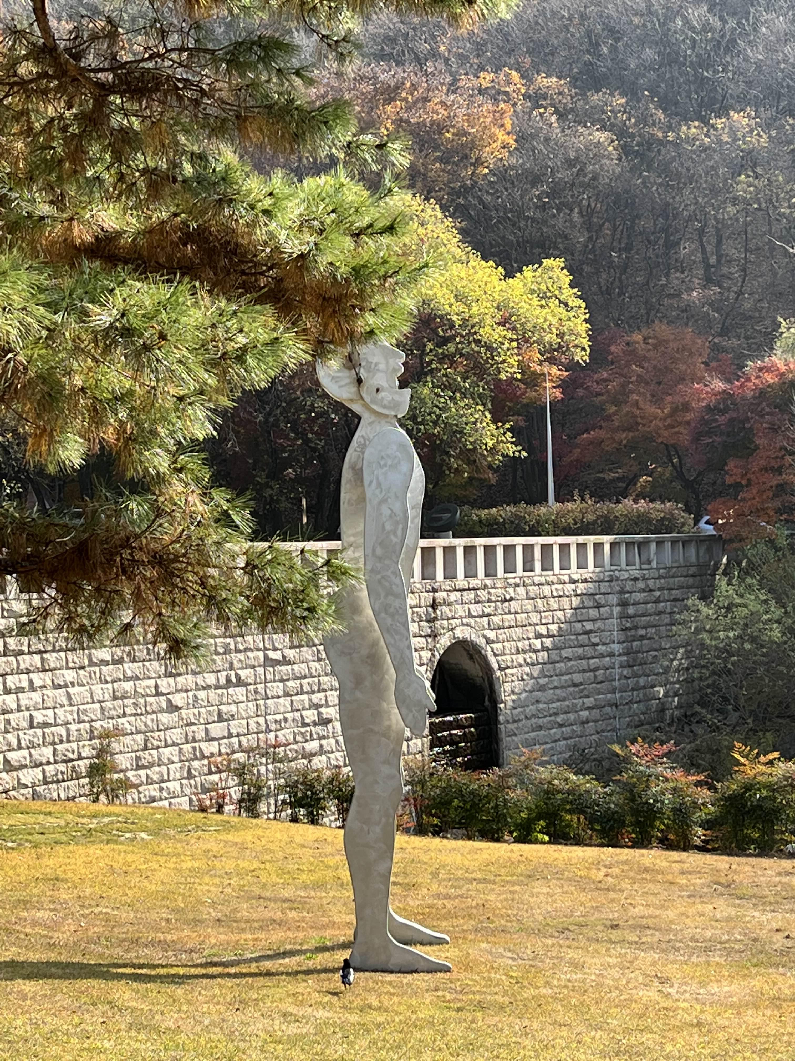 국립현대미술관 입구쪽 야외광장에 설치된 남자 조각상이. '흥얼거리는 노래소리'는 조각가가 직접 부른 '허밍'이다.