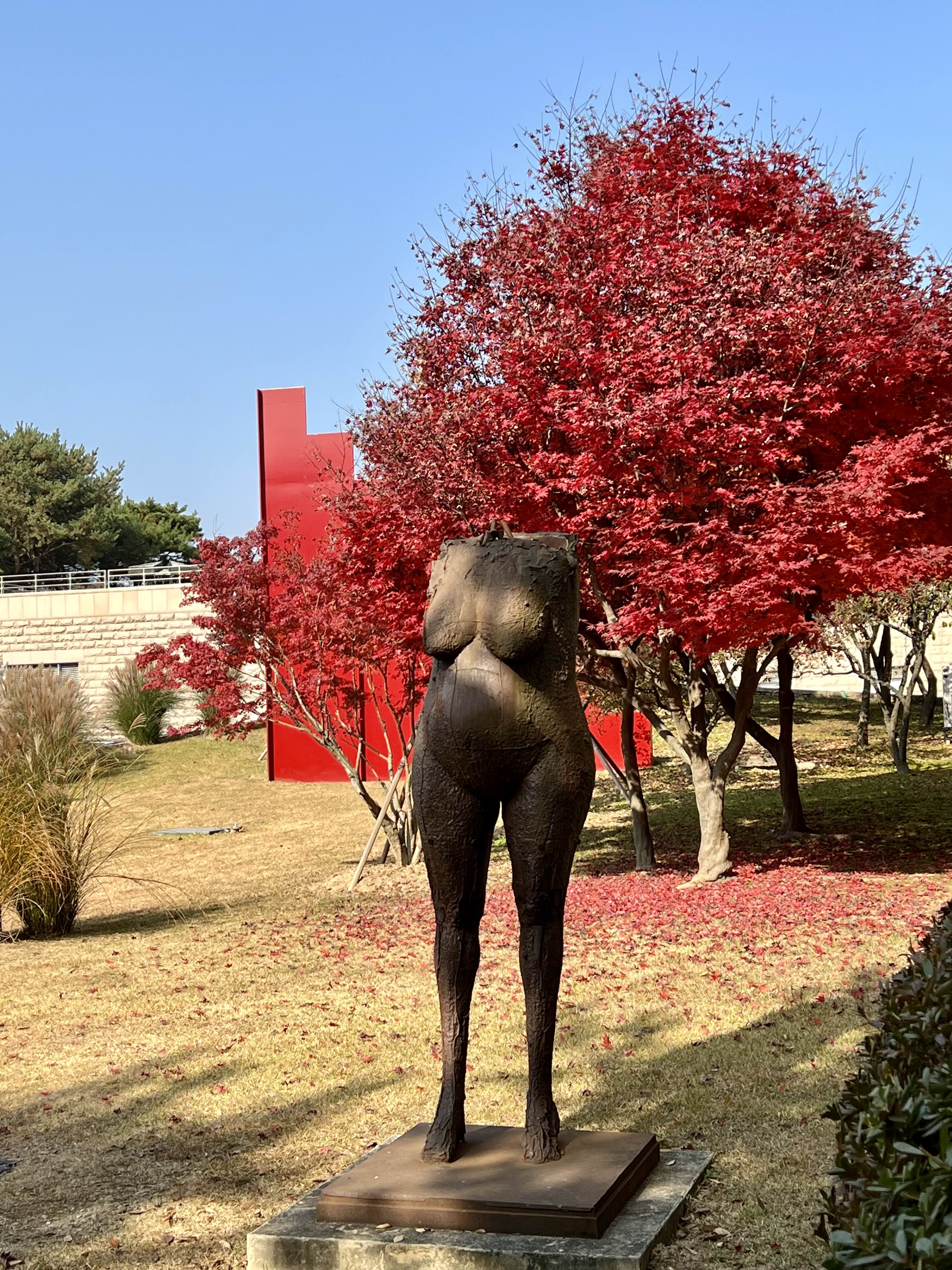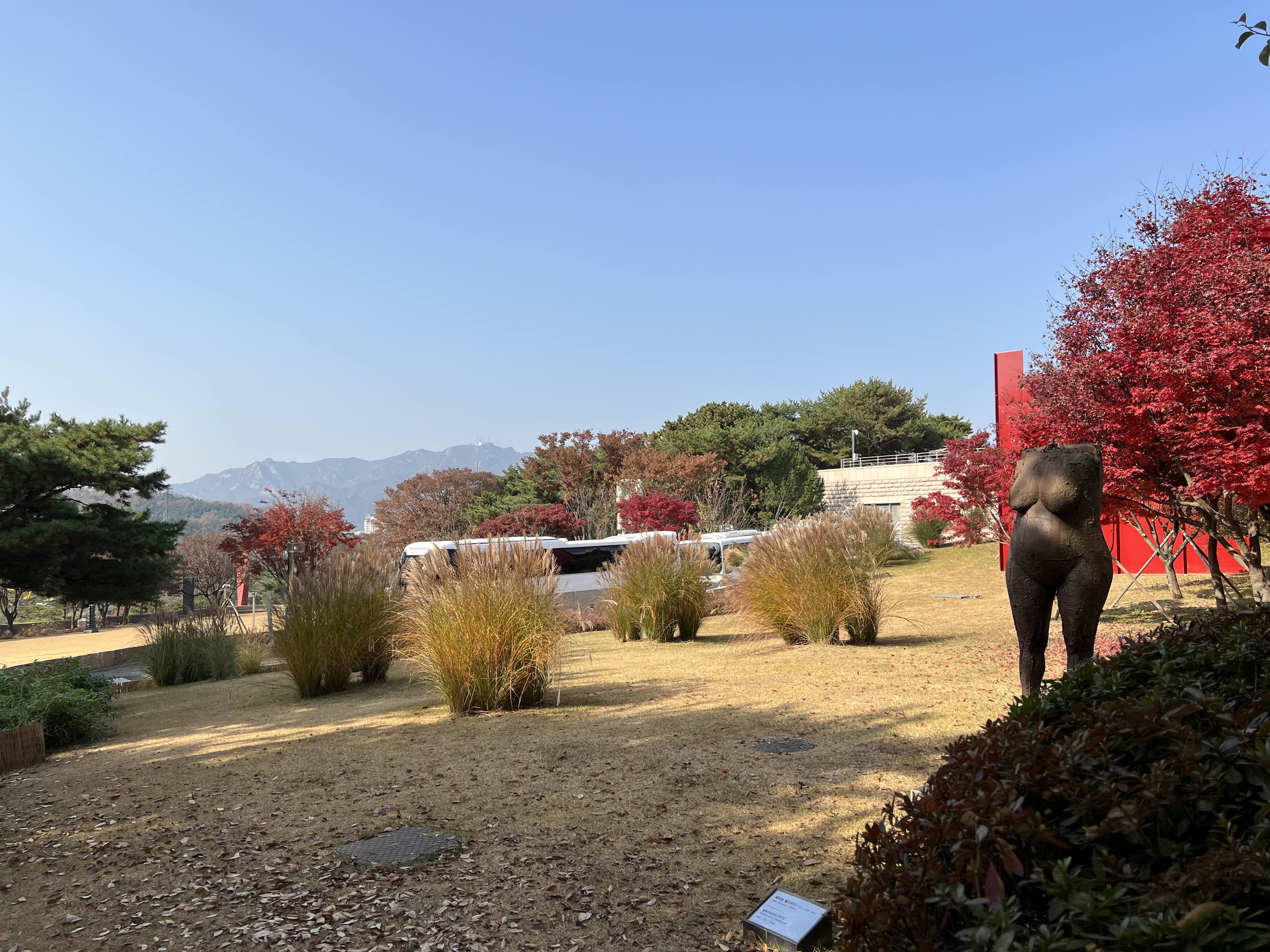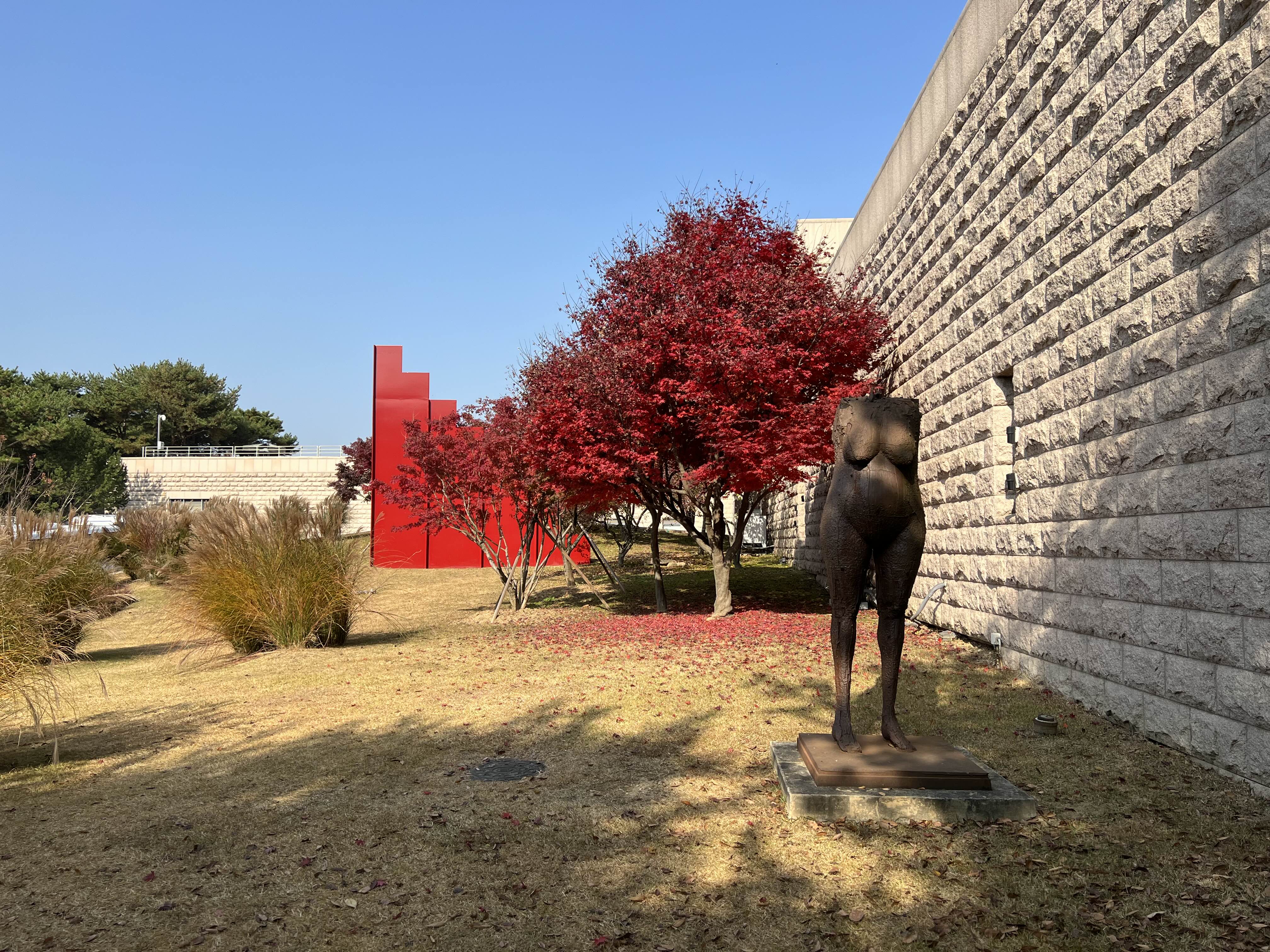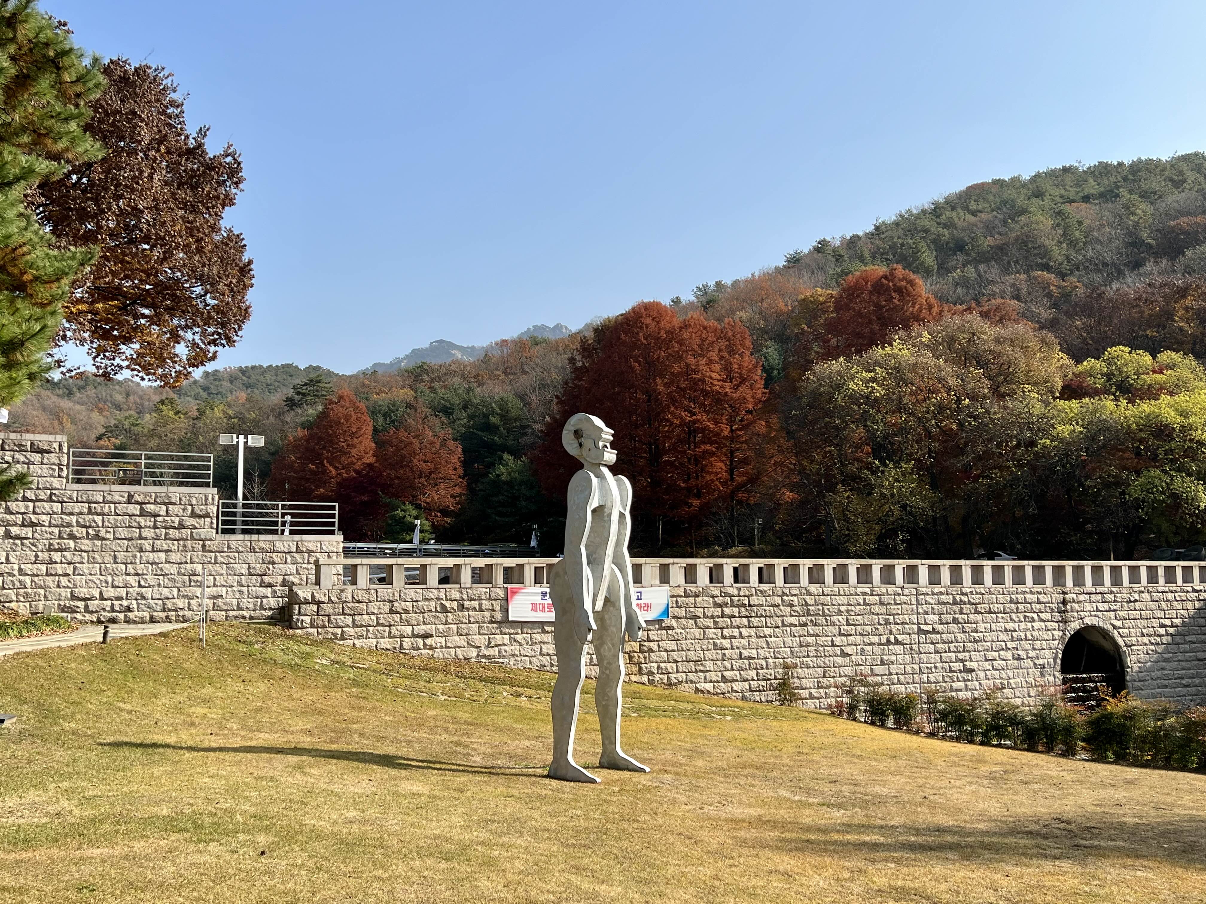 국립현대미술관 입구쪽 야외광장에 설치된 남자 조각상이. '흥얼거리는 노래소리'는 조각가가 직접 부른 '허밍'이다.