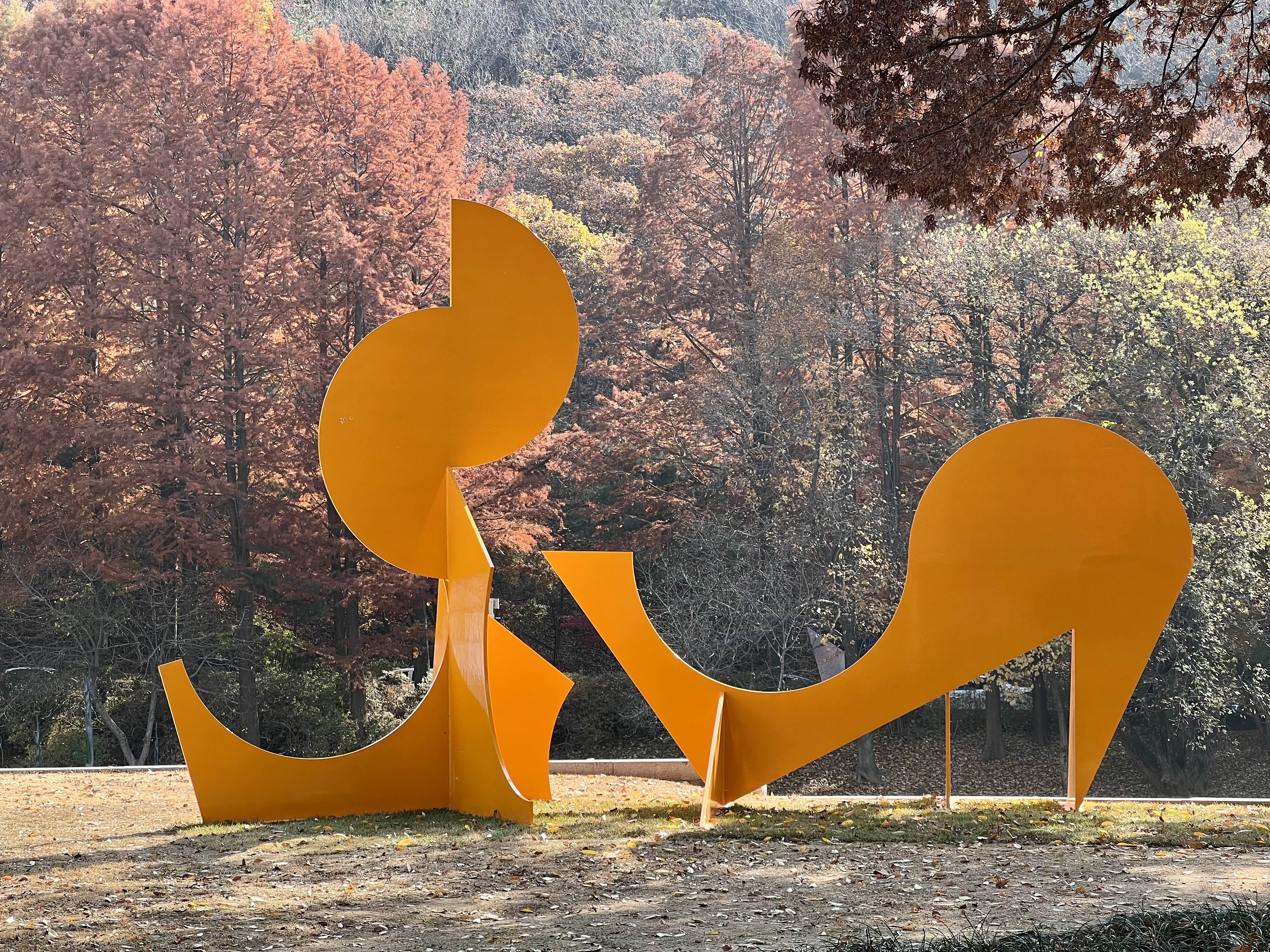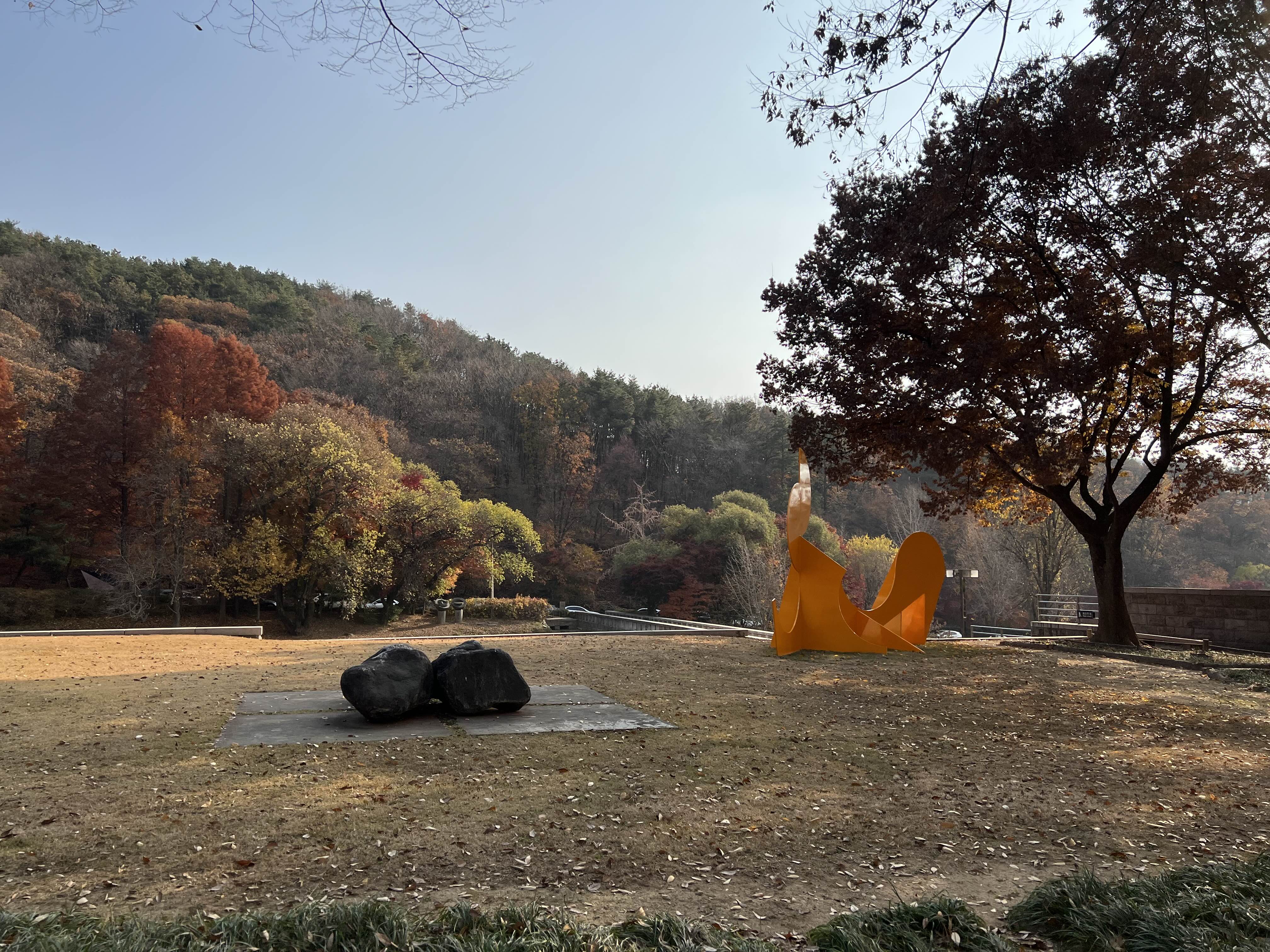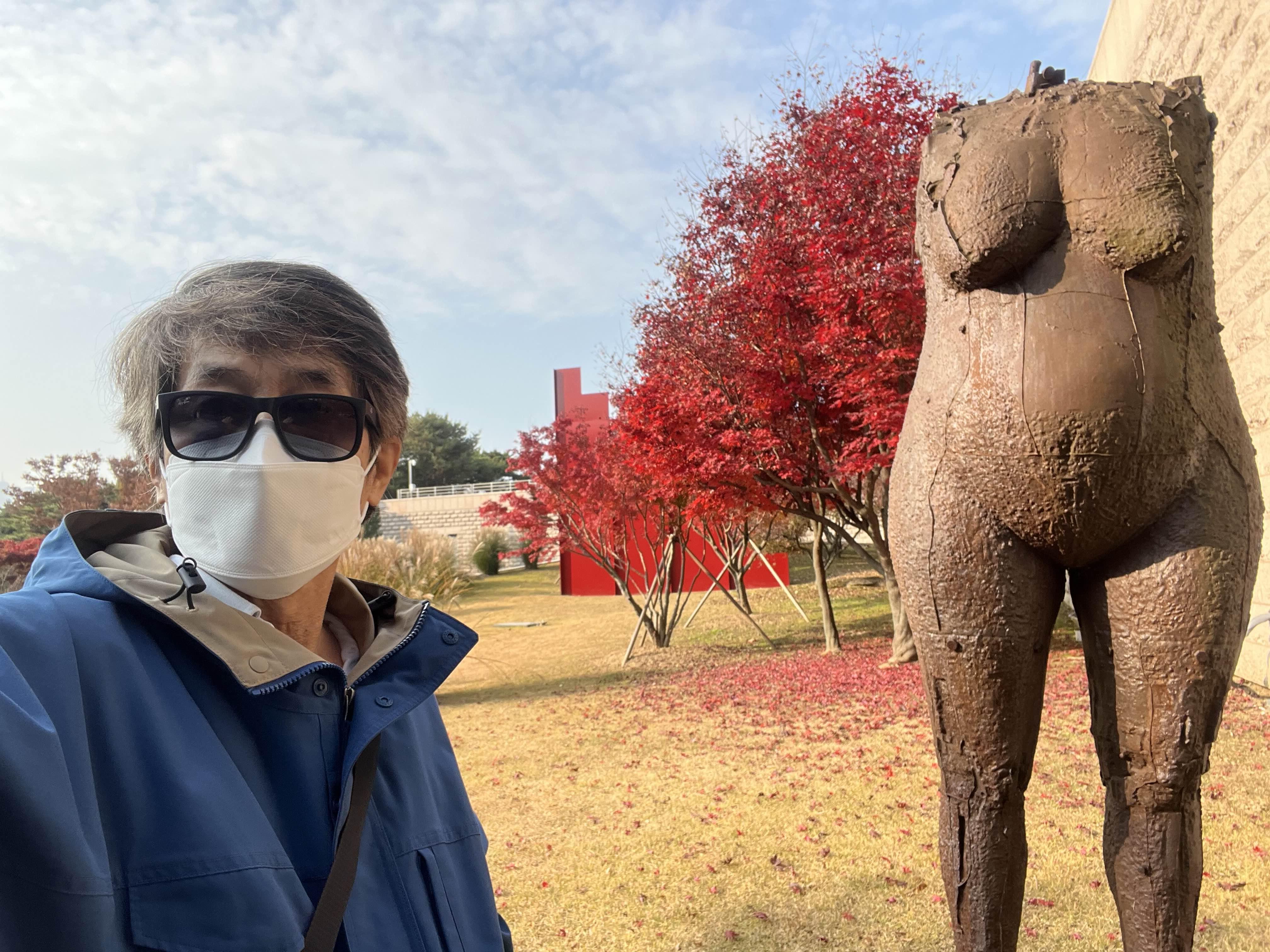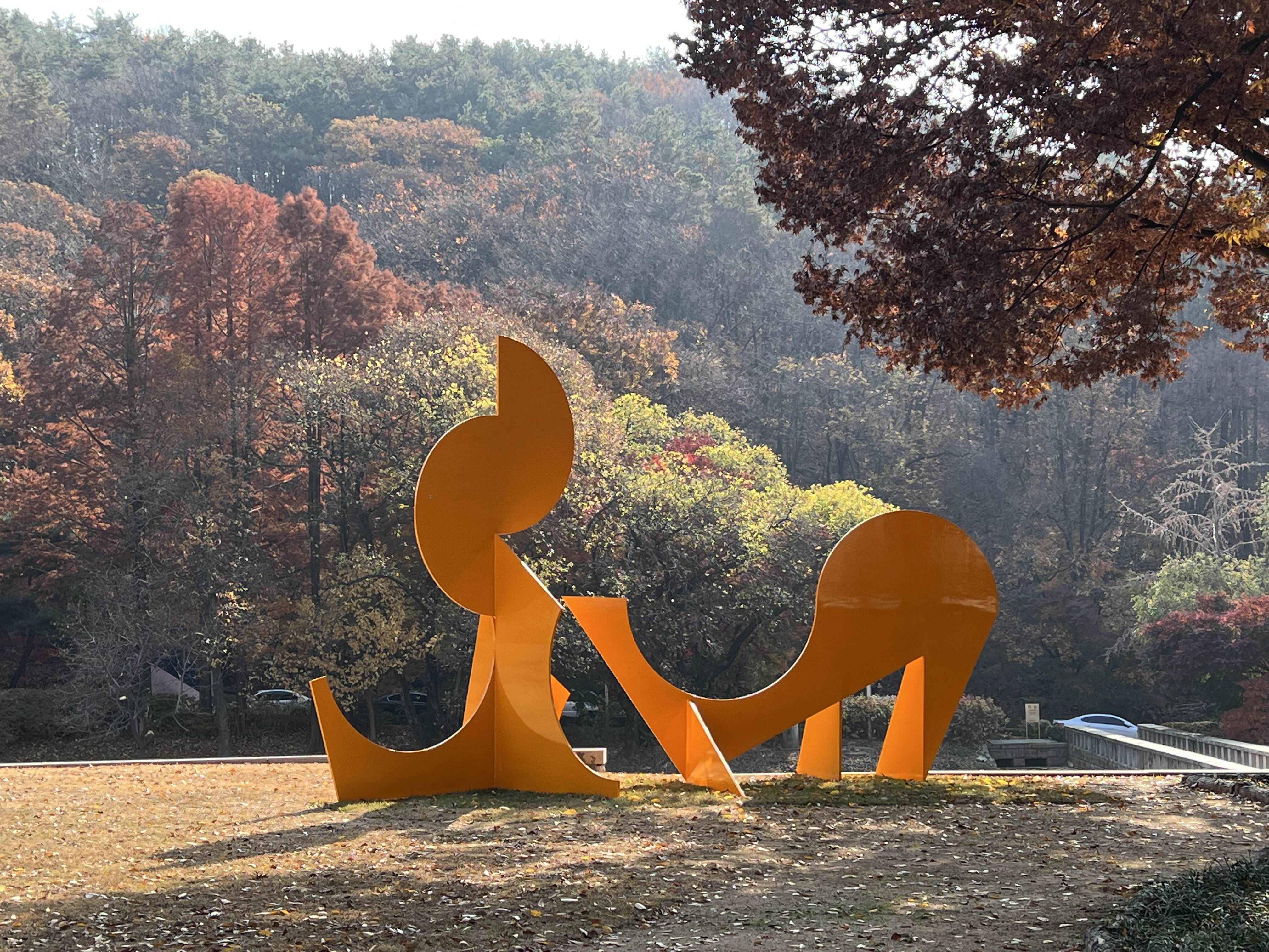 국립현대미술관 입구쪽 야외광장에 설치된 남자 조각상이. '흥얼거리는 노래소리'는 조각가가 직접 부른 '허밍'이다.