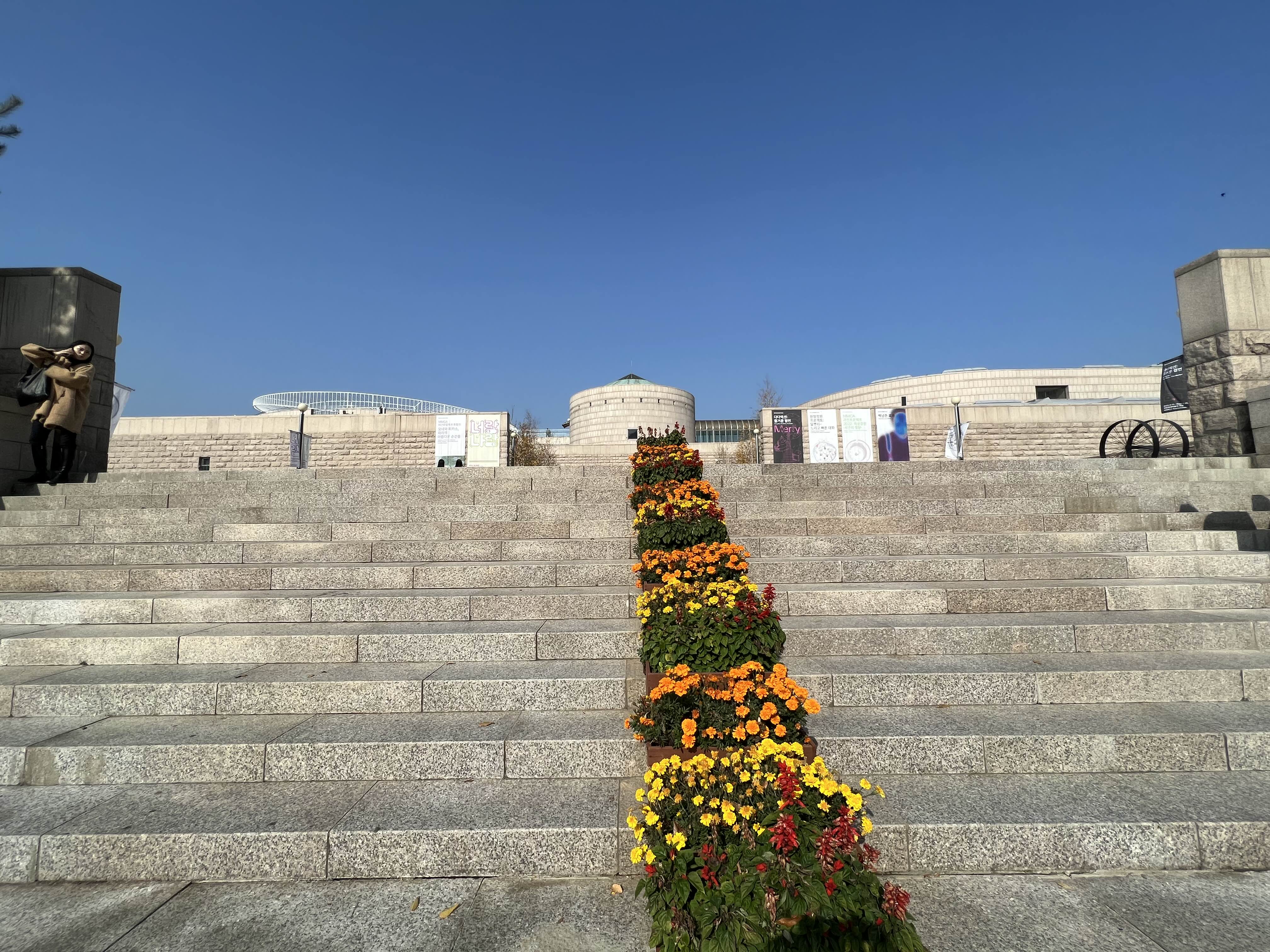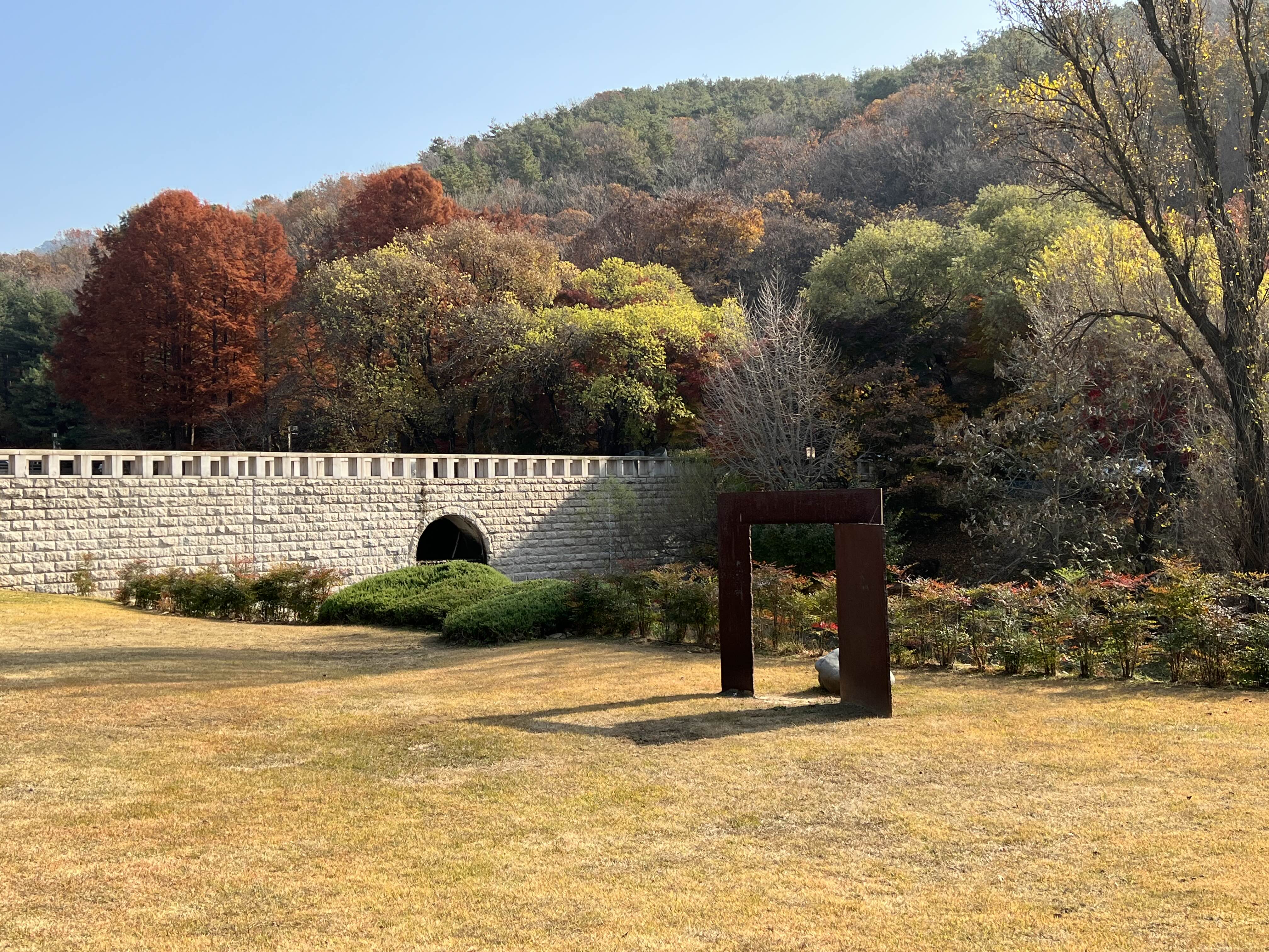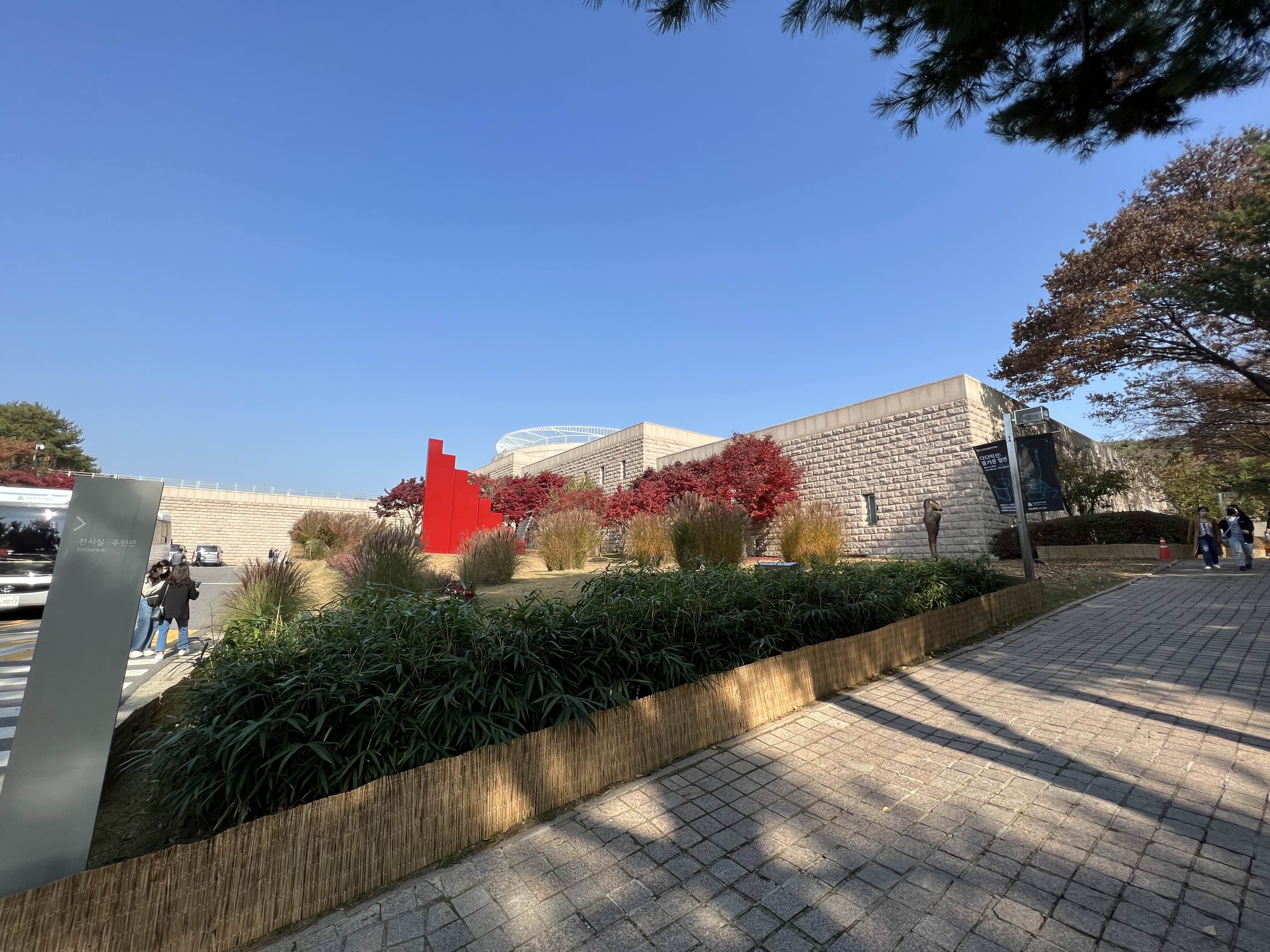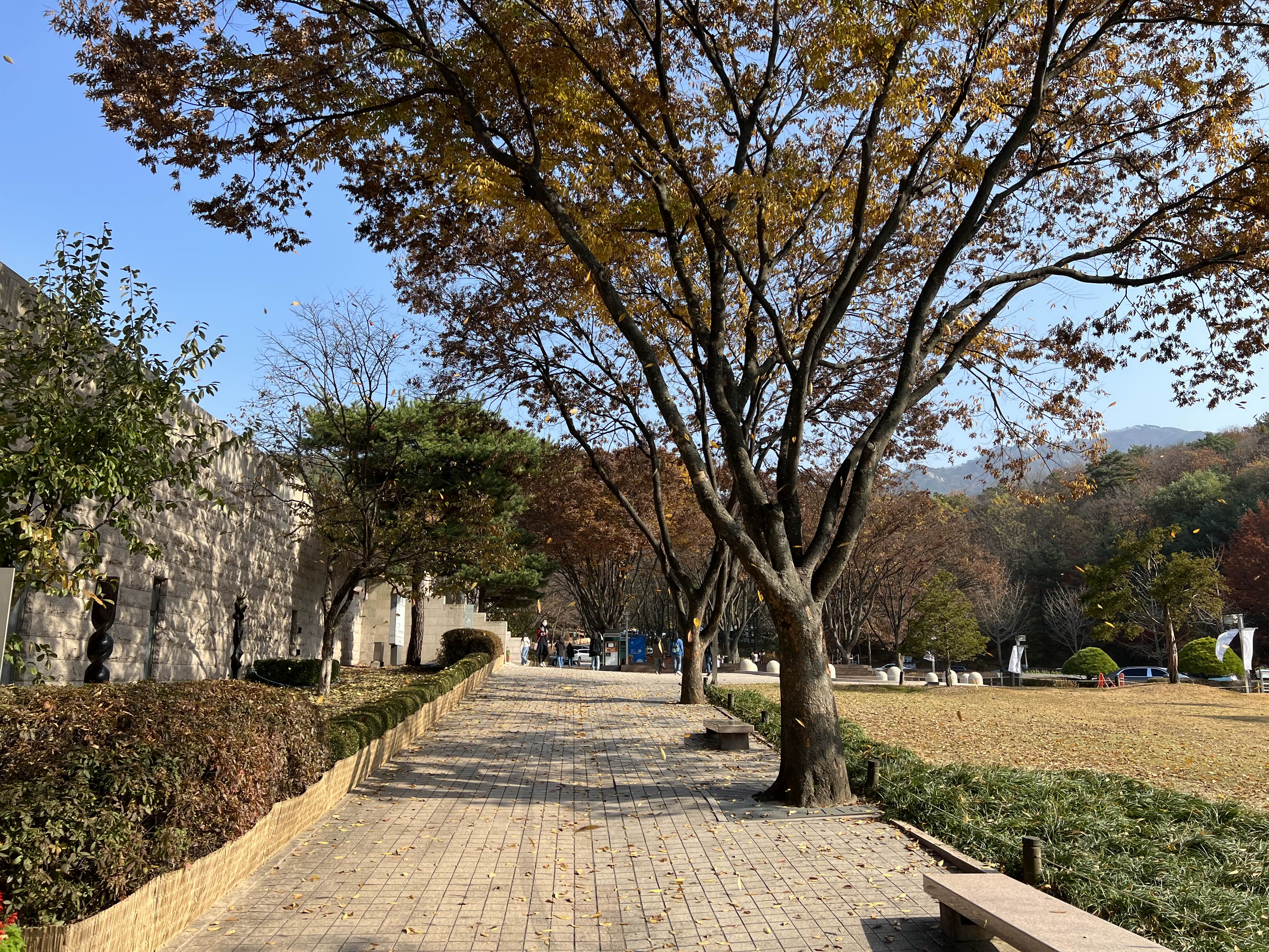국립현대미술관 입구쪽 야외광장에 설치된 남자 조각상이. '흥얼거리는 노래소리'는 조각가가 직접 부른 '허밍'이다.