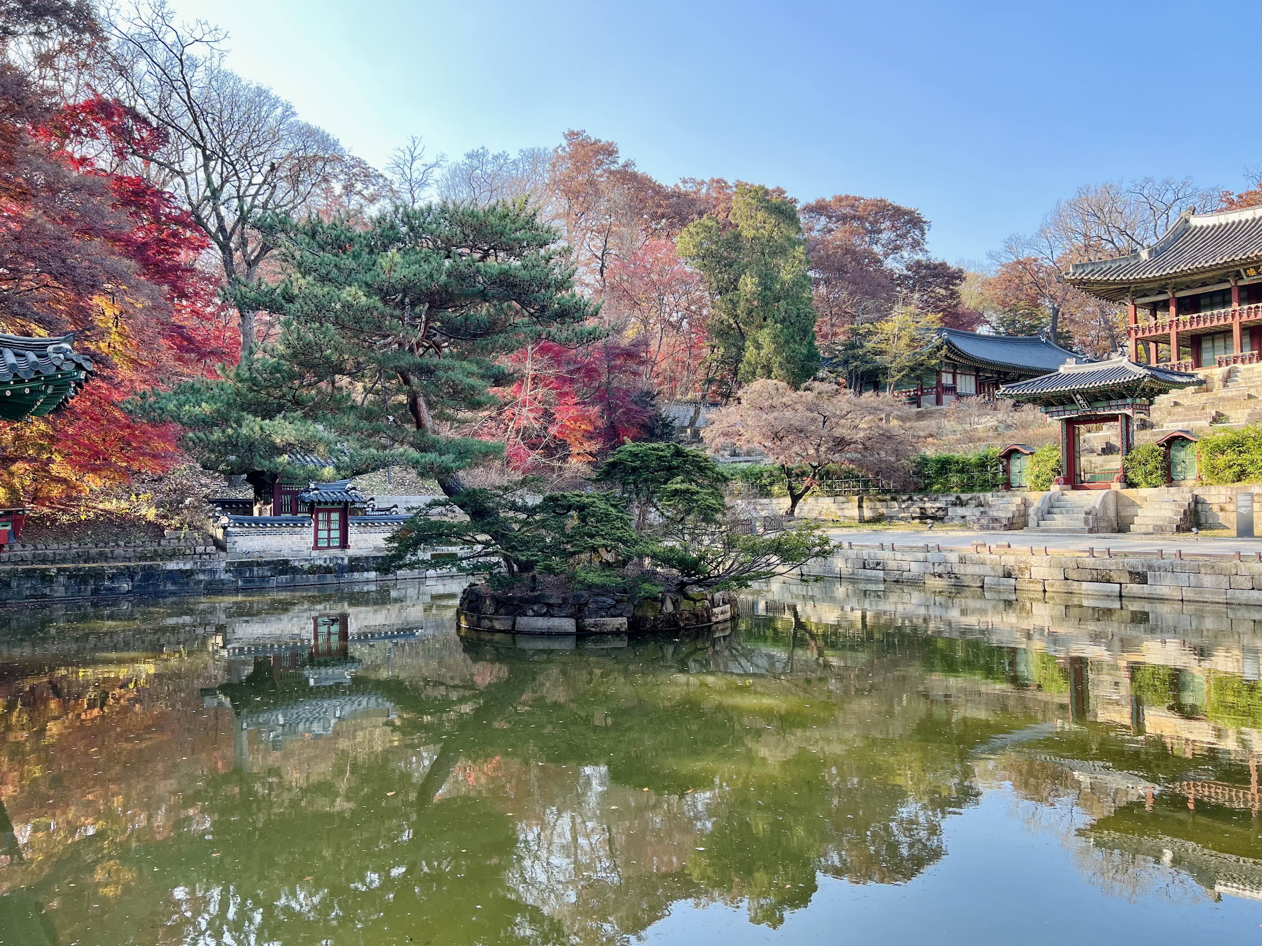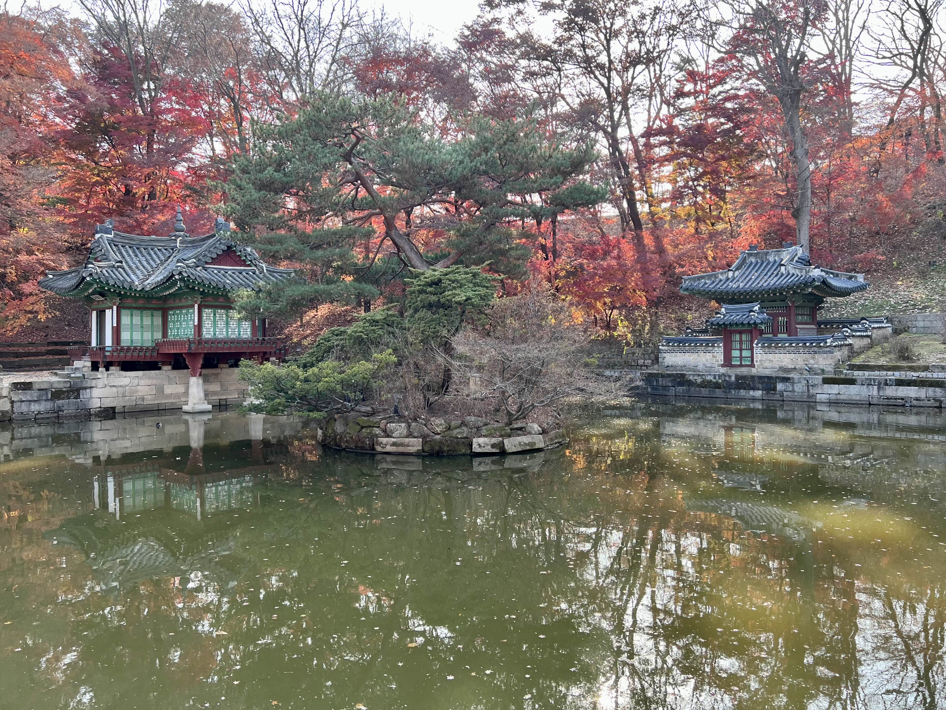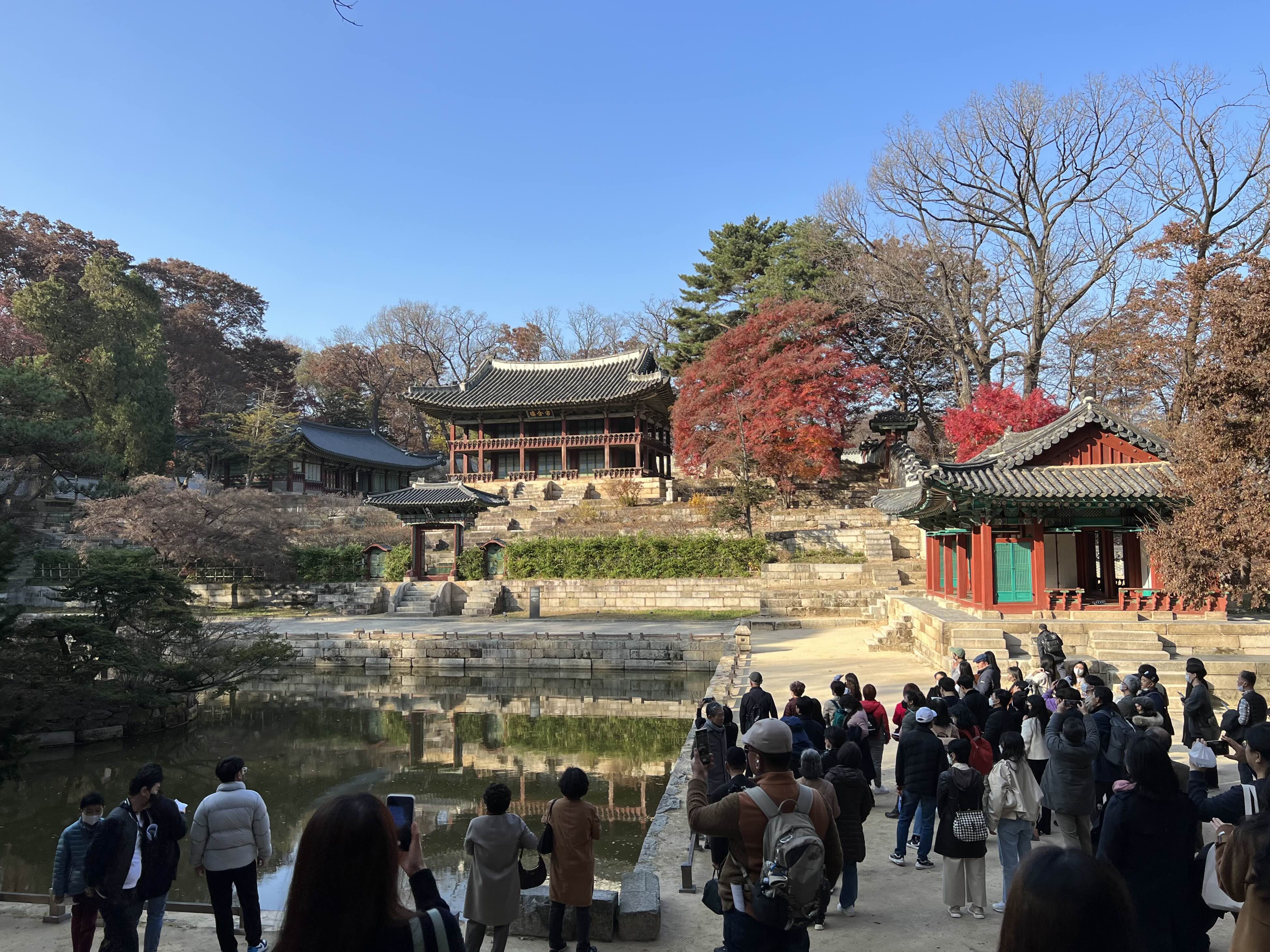 행사가 치러지던 영화당은 연못에 면해 있으며, 학문을 연마하던 주합루는 높은 곳에서 연못을 내려다보고 있다.