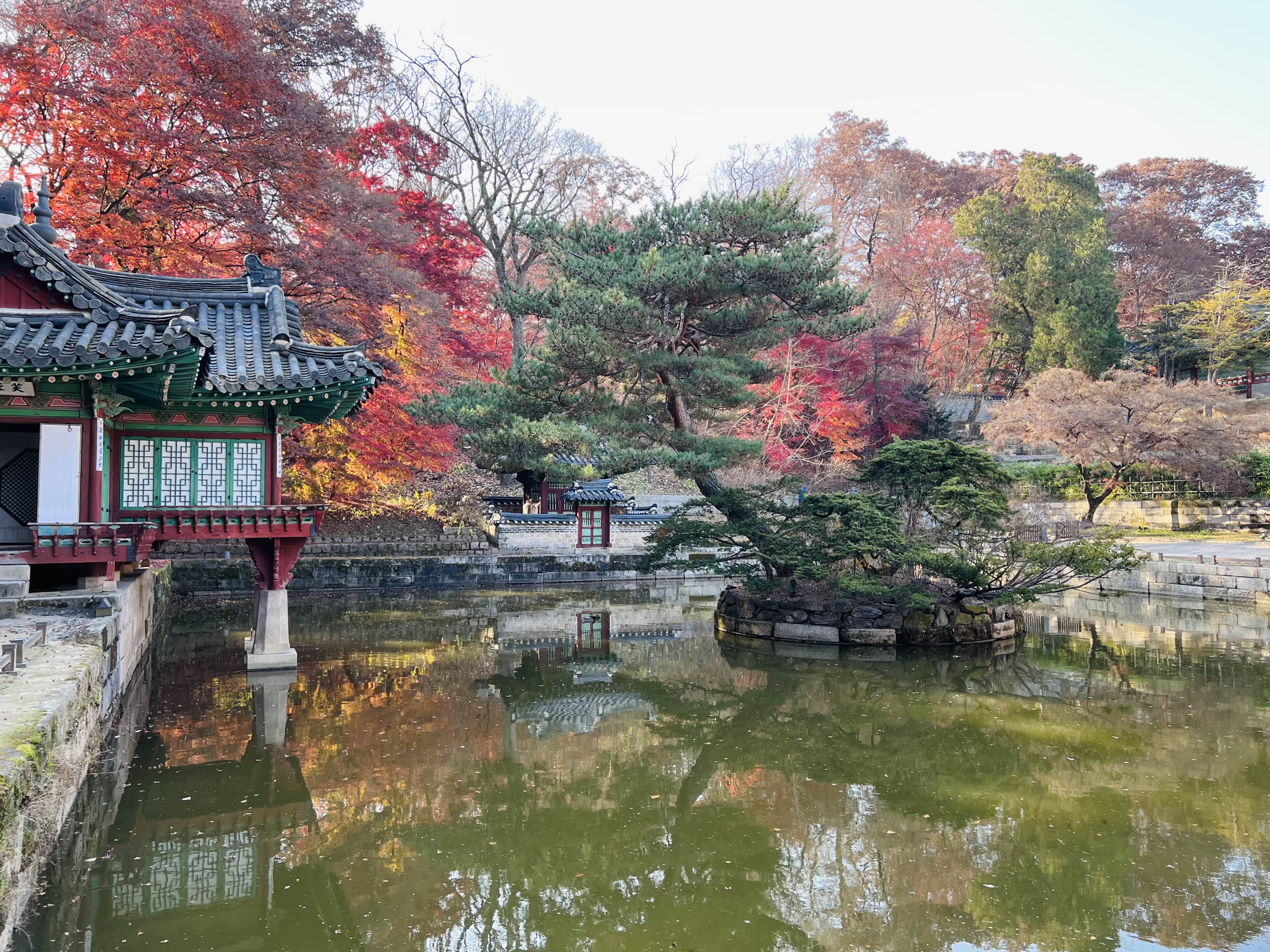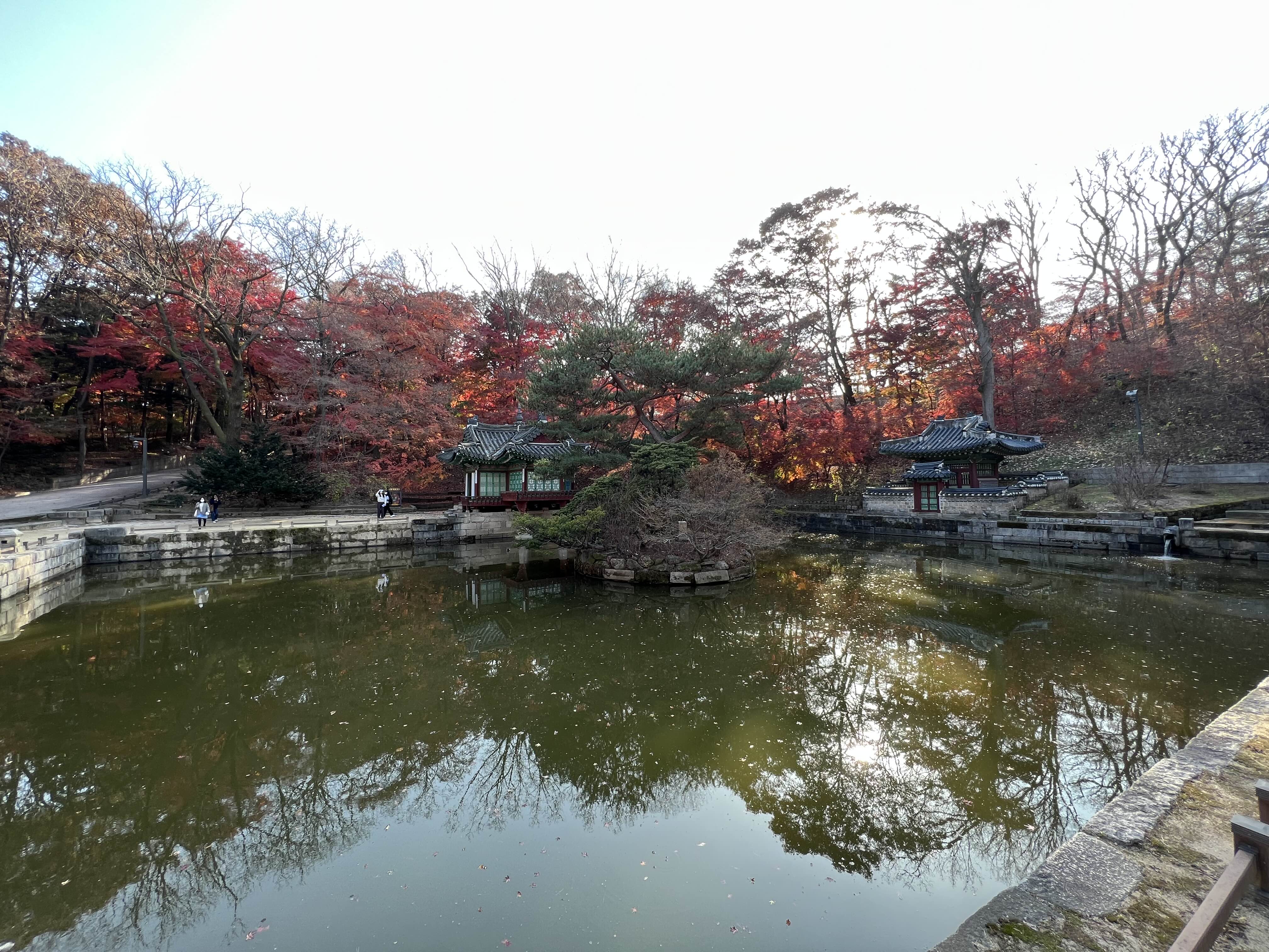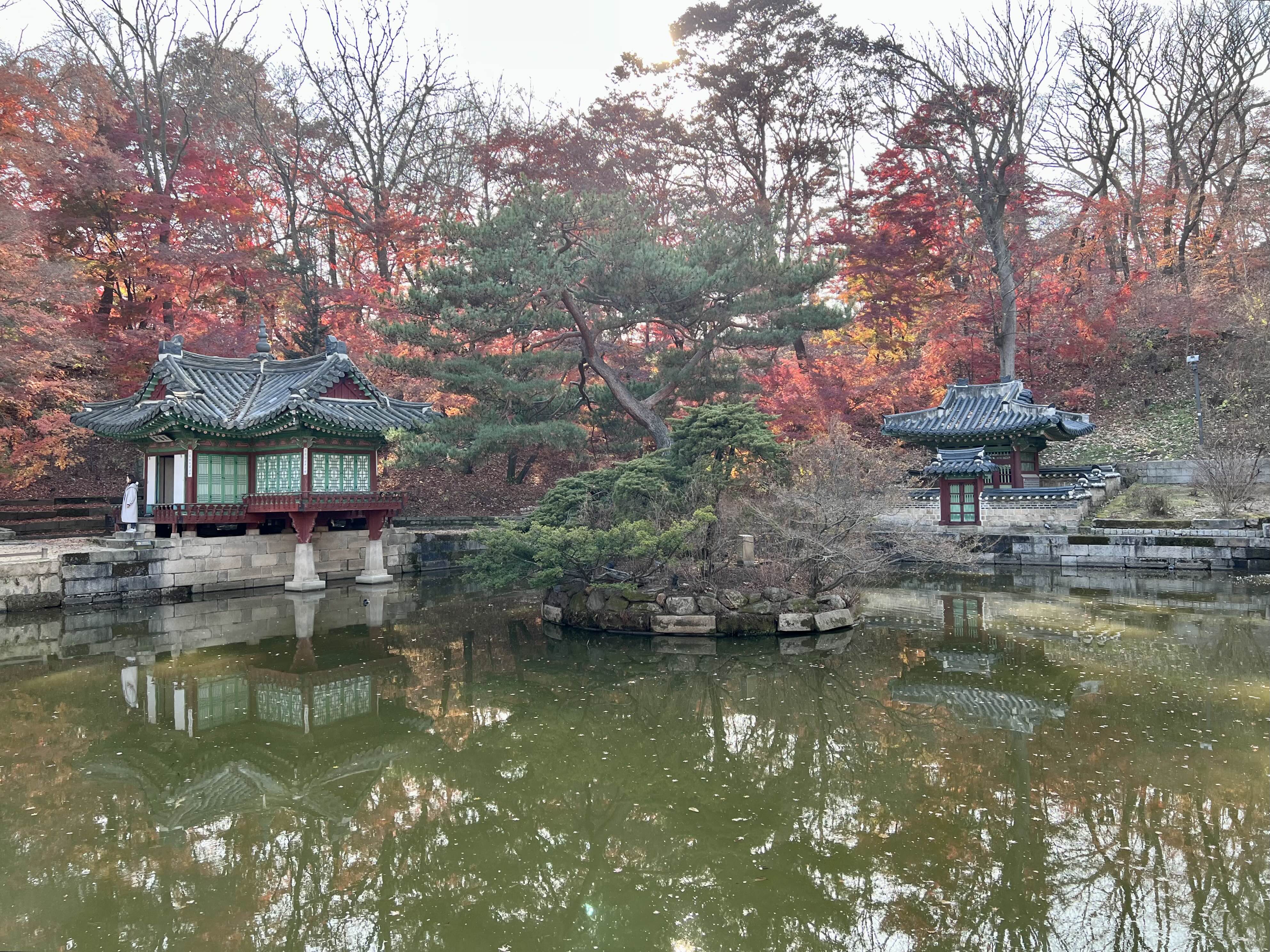 행사가 치러지던 영화당은 연못에 면해 있으며, 학문을 연마하던 주합루는 높은 곳에서 연못을 내려다보고 있다.