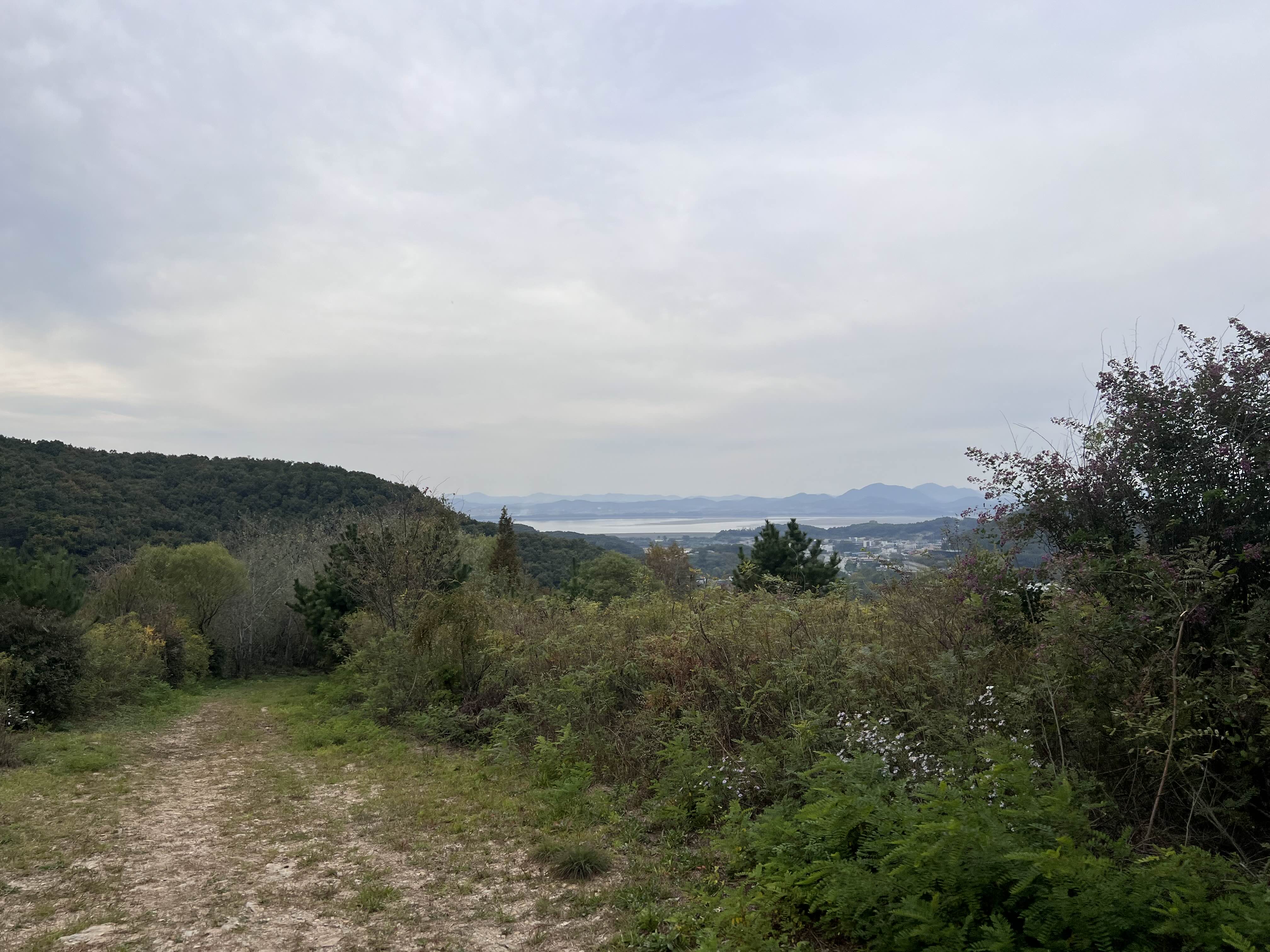 날씨가 흐리지만 저 멀리 북한산 봉우리 가 보인다