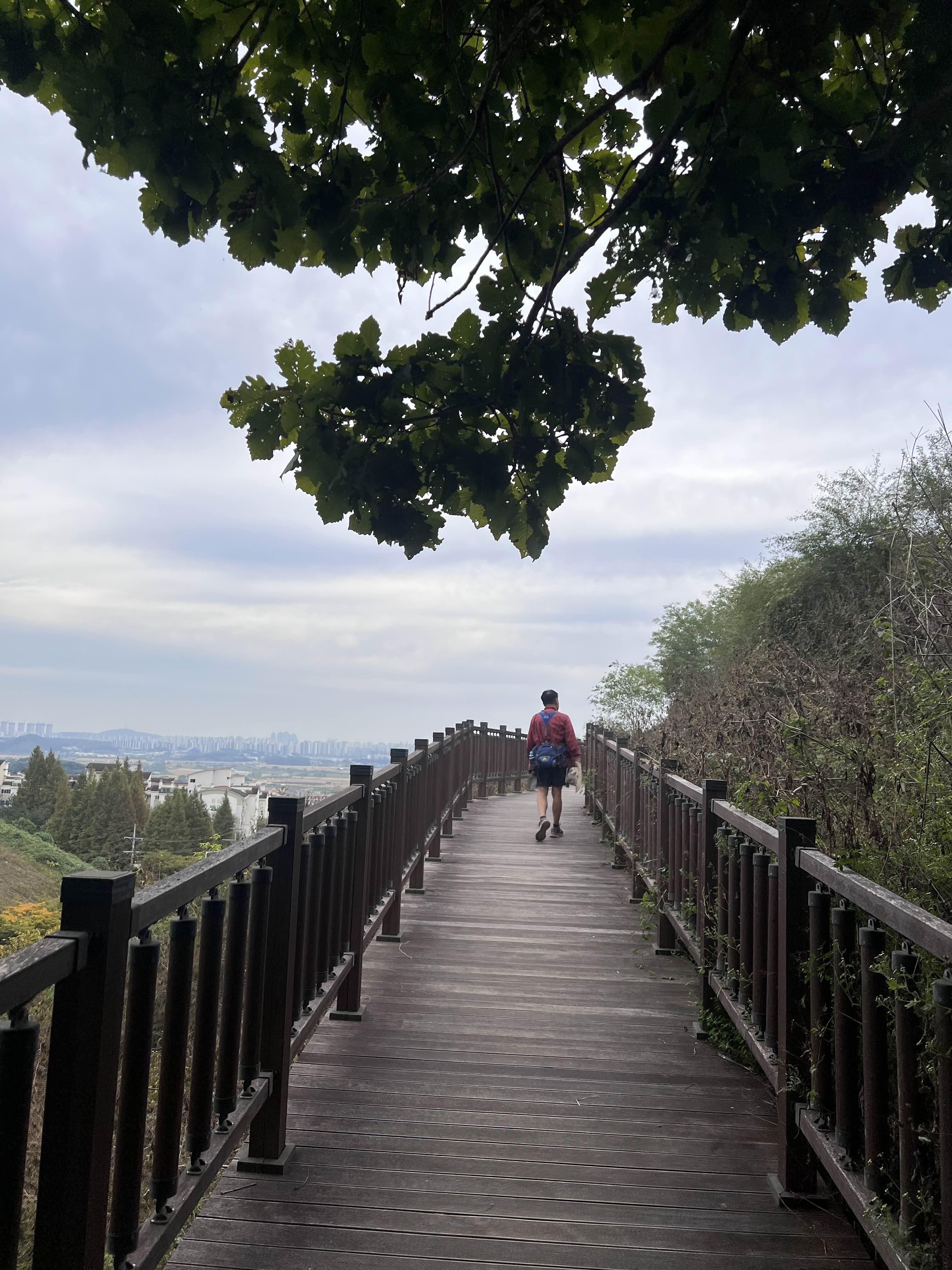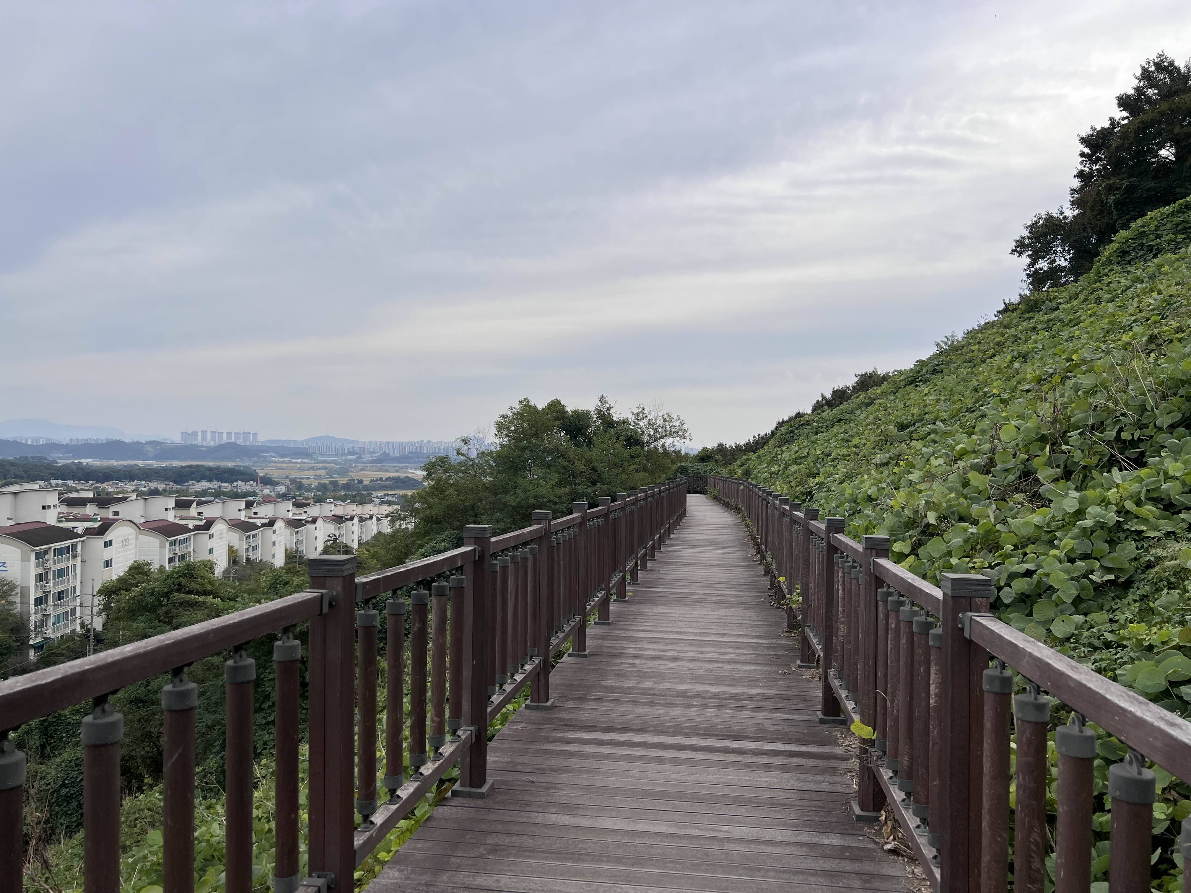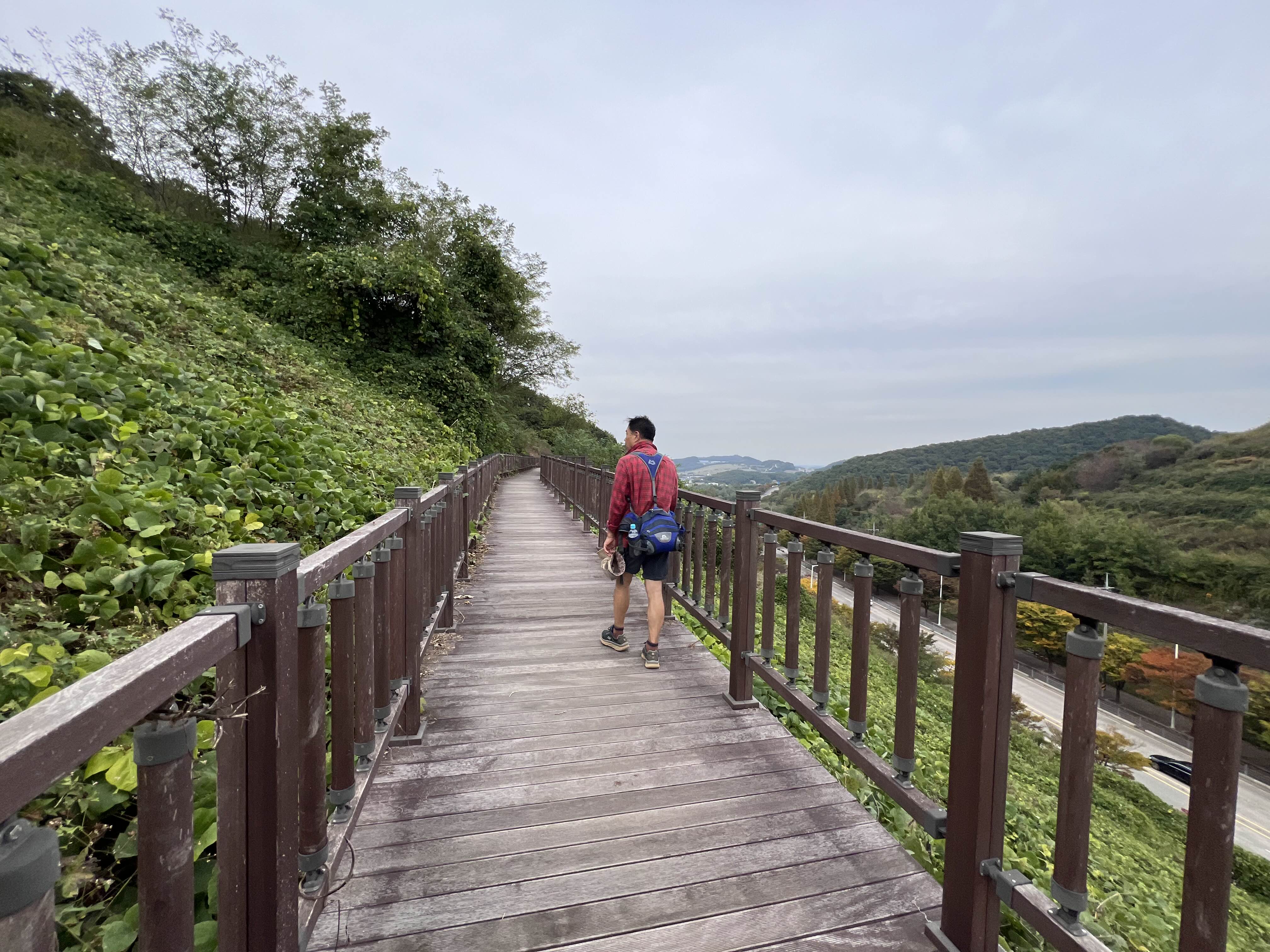 시원하게 길게 뻗은 나무데크 길