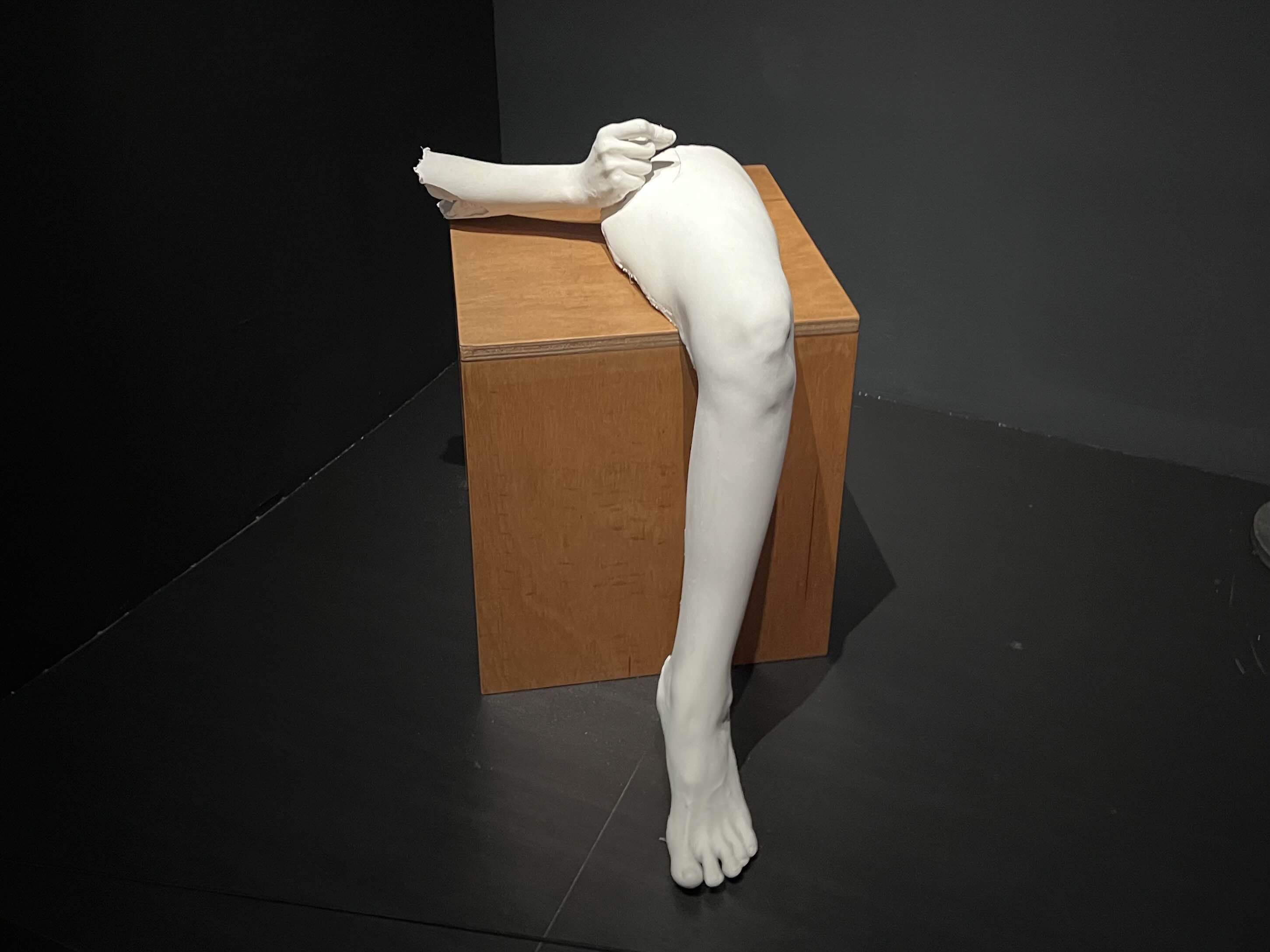 2021, 침 놓을 손 하나, 맞을 다리 하나, 강화 석고, 침술용 바늘, 60x60x40 cm, 작가 소장, @윤지영,