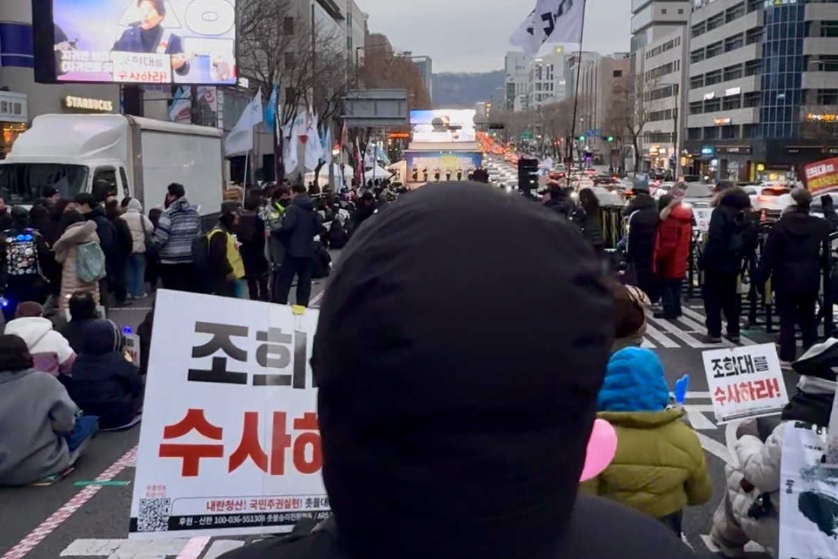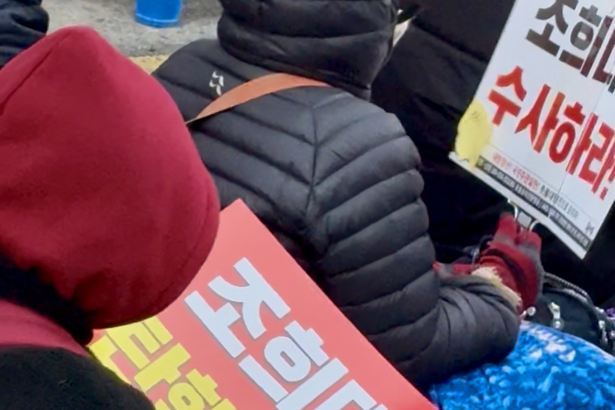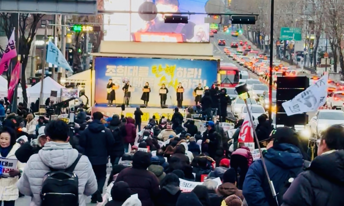 노래가 시작되면시민의 목소리가 받는다.조희대 탄핵하라!조희대 수사하라!지귀연 퇴출하라!노래 사이사이“탄핵하라!”“퇴출하라!”추임새가 붙고함성이 겹친다.끝까지 싸우리라.이 밤은