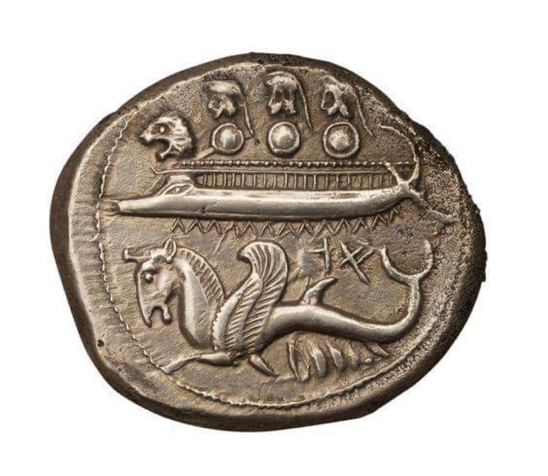 “Byblos Silver Shekel, a Phoenician coin with a war ship, issued by King Adramelek (375-351 BC). British Museum #archaeohistories”