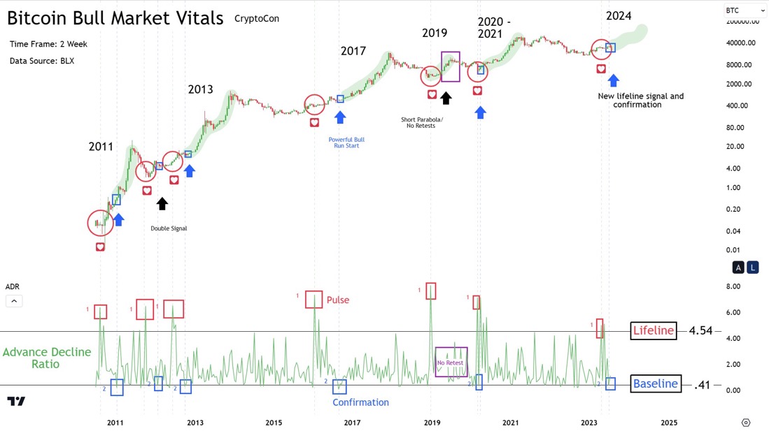โThe #Bitcoin vital signs have roared to life not only with a pulse (red)๐ฅ, but a confirmation (blue)๐ฆ This combination is a typical once in a cycle signal The ADR clearly shows an extremely powerful bull run coming There is no point in worrying ov