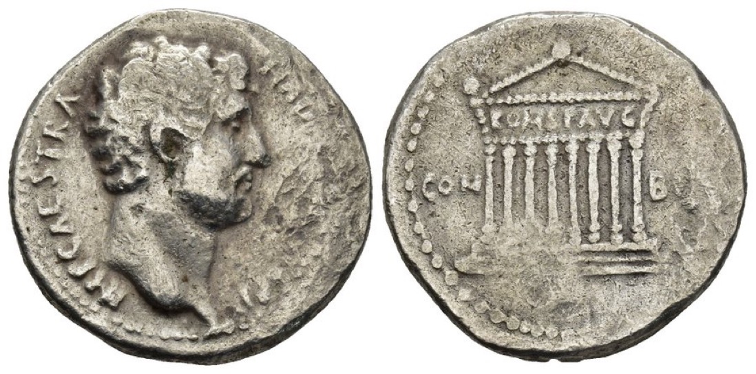 경매에서 이 하드리아누스의 주화를 합리적인 가격에 획득하게 되어 매우 기쁩니다. 서기 128년 이후 니코메디아에서 주조된 Cistophoric Tetradrachm (26mm, 13.84g)입니다(제국 조폐국). 뒷면은 엔타블러처에 ROM ET AVG (로마와 아우구스투스에게)라는 전설이 있고 COM BIT (Commune Bithynia)라는 단어가 가로질러 있는 3단 연단에 세워진 팔각형 사원을 보여줍니다.