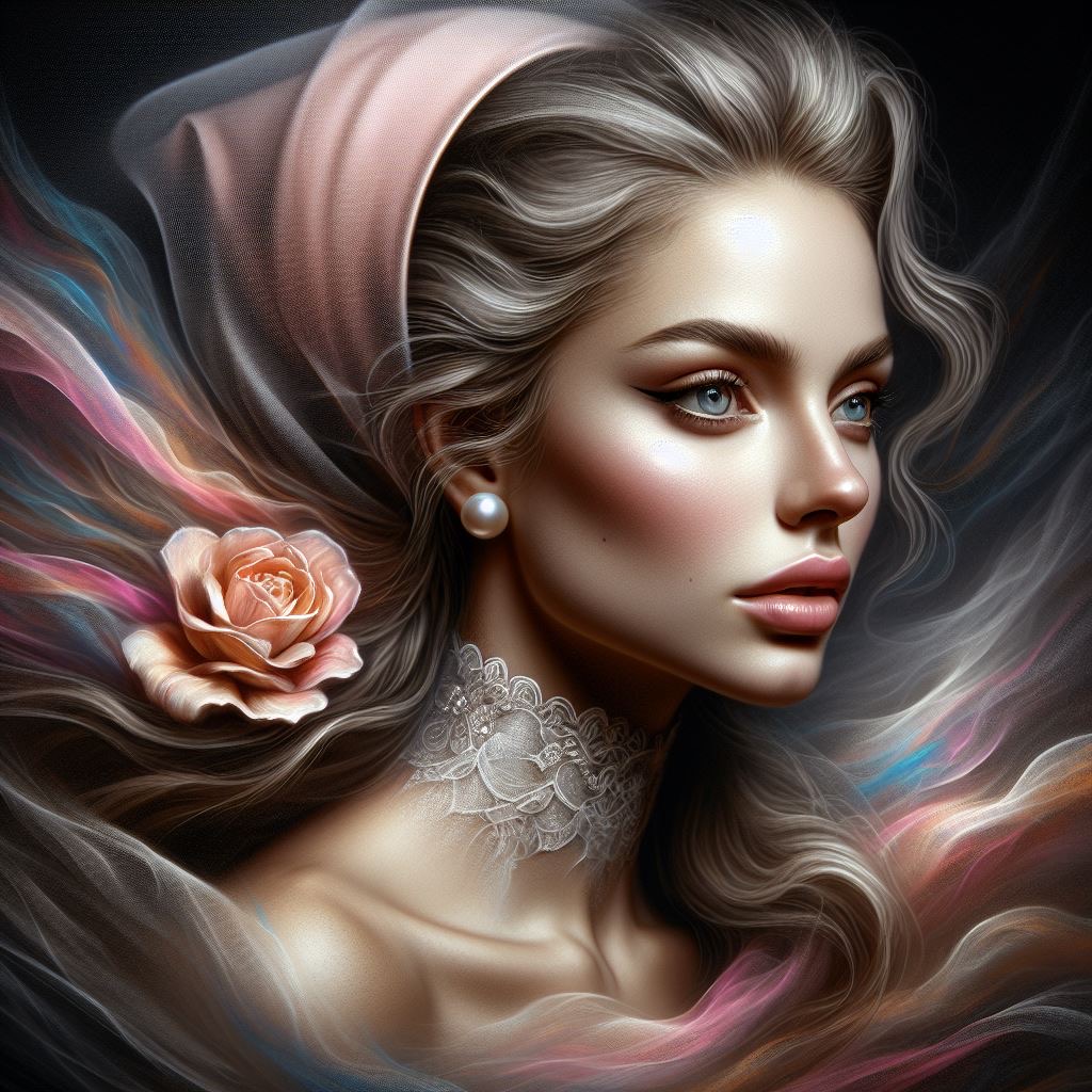 Portrait of sublime pinnacle of elegance and beauty, professional, hyperrealistic detailed, ultra sharp focus, dramatic, photorealistic, vivid, smooth, lively atmospheric, airbrush painting by Pino Daeni, Greg Olsen, Ilya Kuvshinov