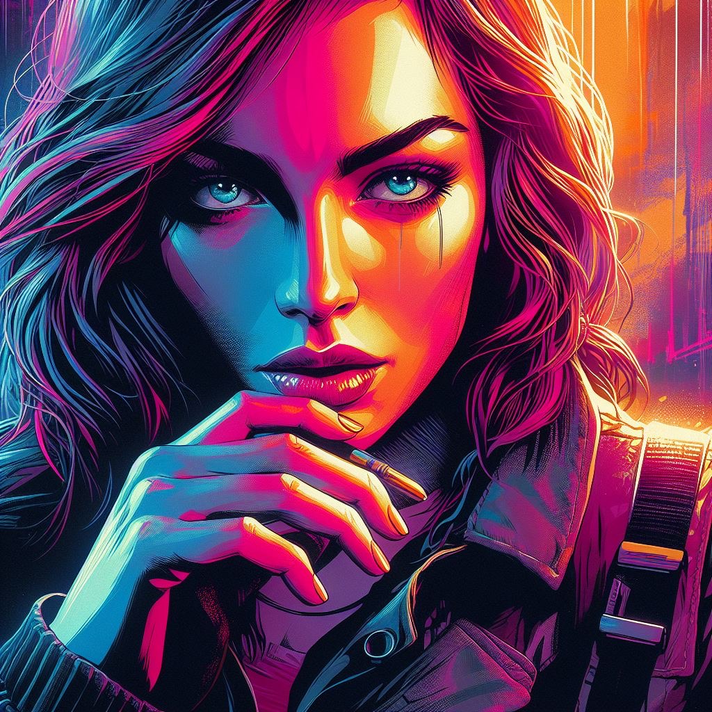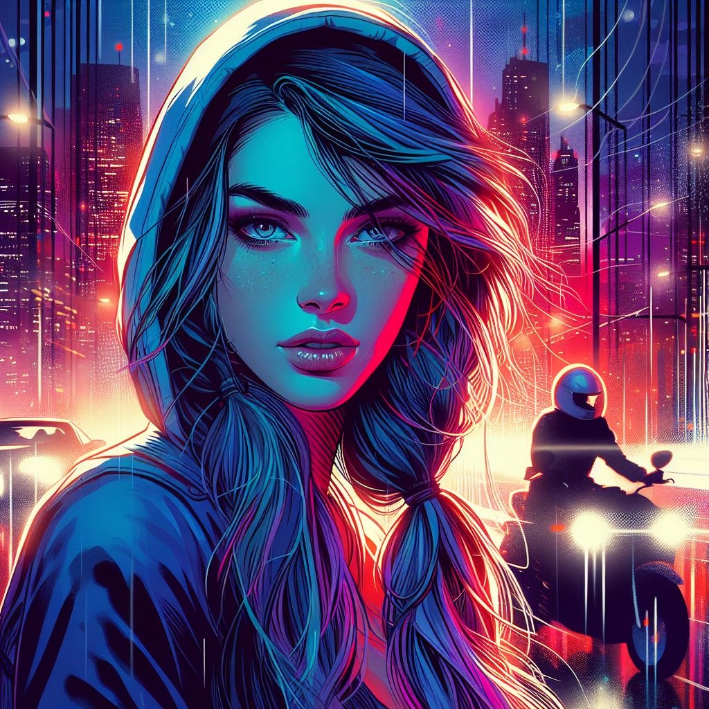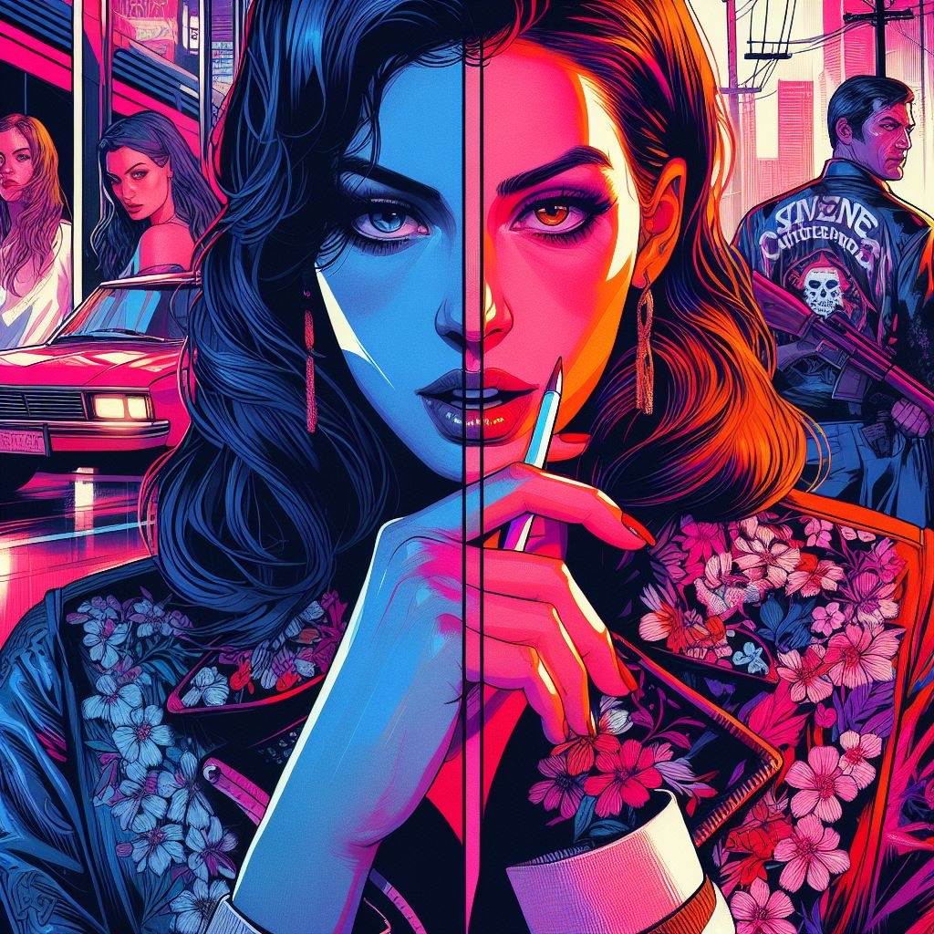 photograph by [Brooke Shaden | Tomer Hanuka] in the style of GTA5-style Illustration Digital Art by Tomer Hanuka, vibrant colors, graphic novel style, dynamic compositions, emotional storytelling, bold lines,